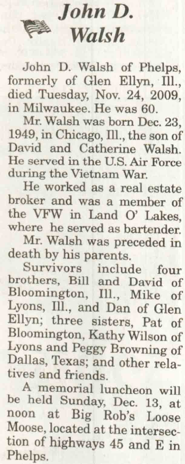 | Walsh | John D | 23 Dec 1949 | 24 Nov 2009 | V N-R | 09 Dec 2009 | 4A |