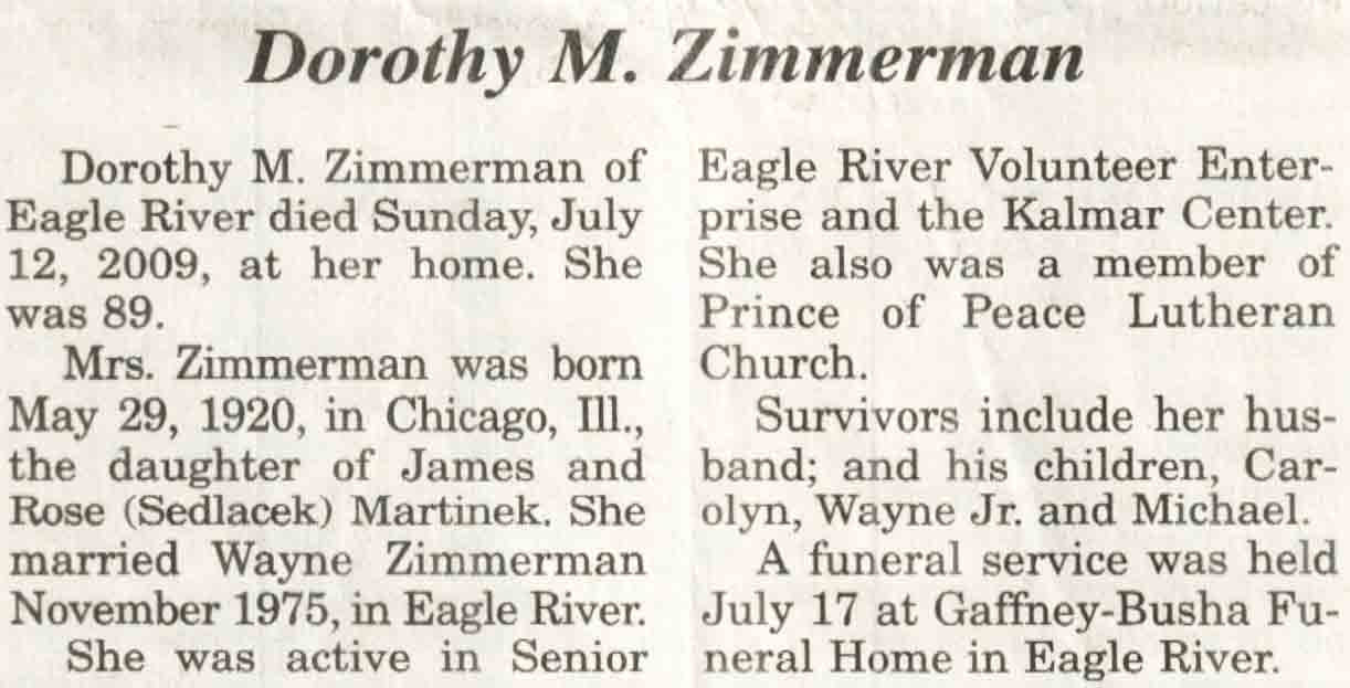 | Zimmerman | Dorothy M | 29 May 1920 | 12 Jul 2009 | V N-R | 22 Jul 2009 | 4A |