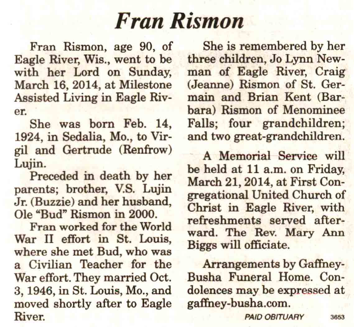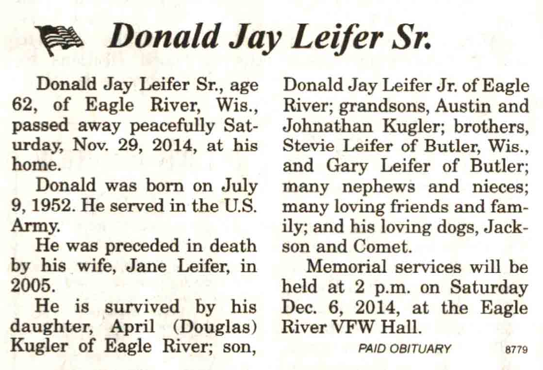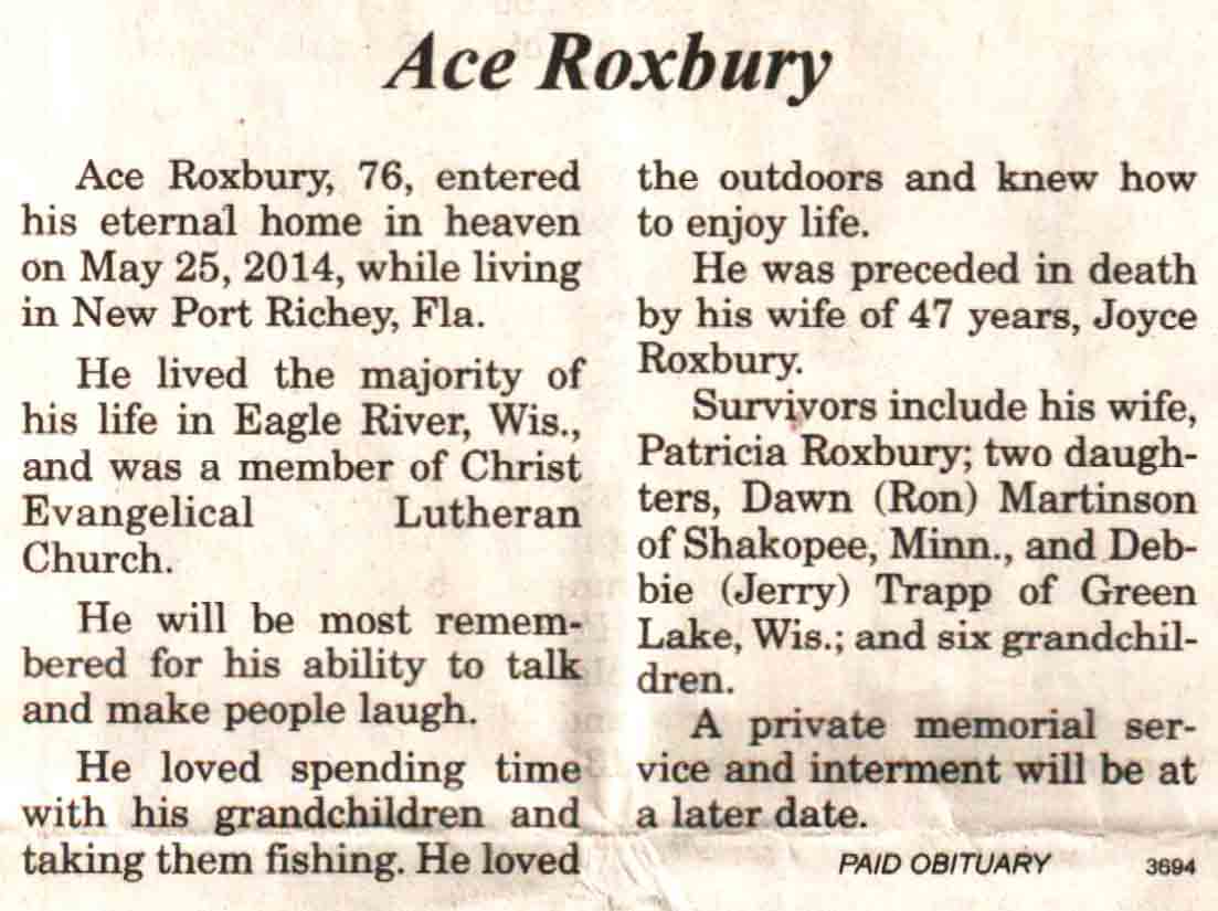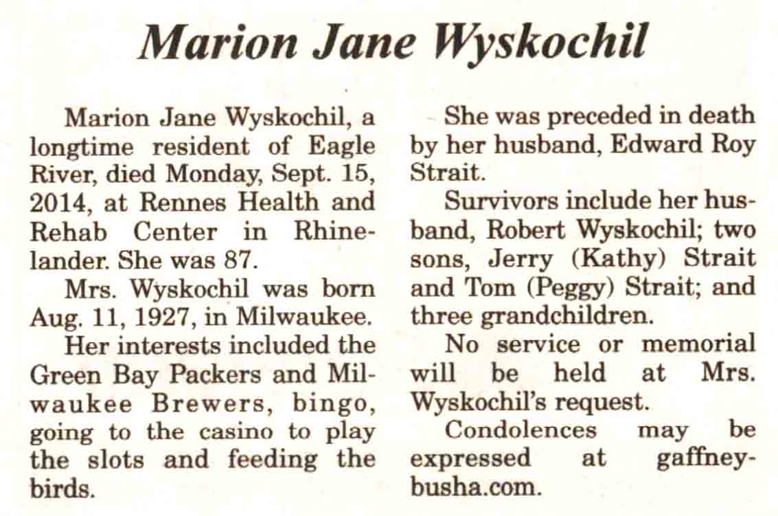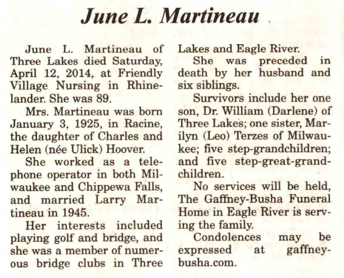 Vilas County, WI, Newspaper Obituaries