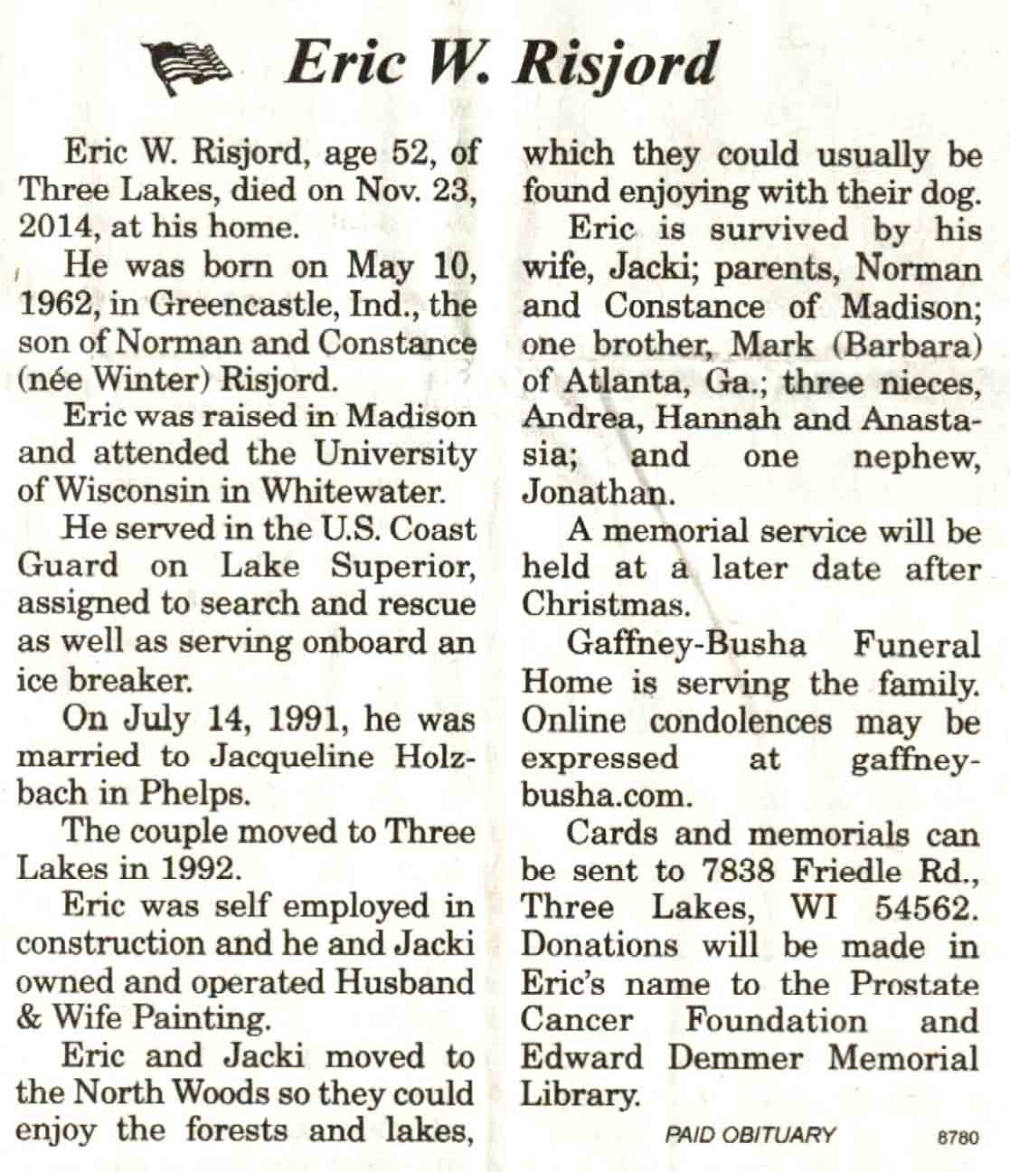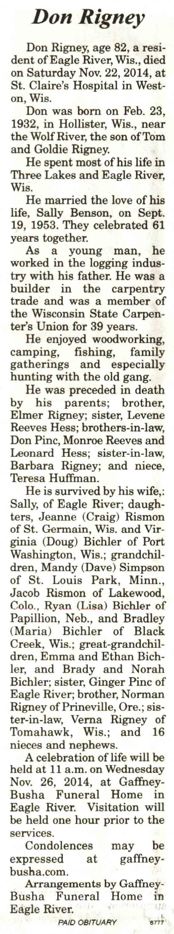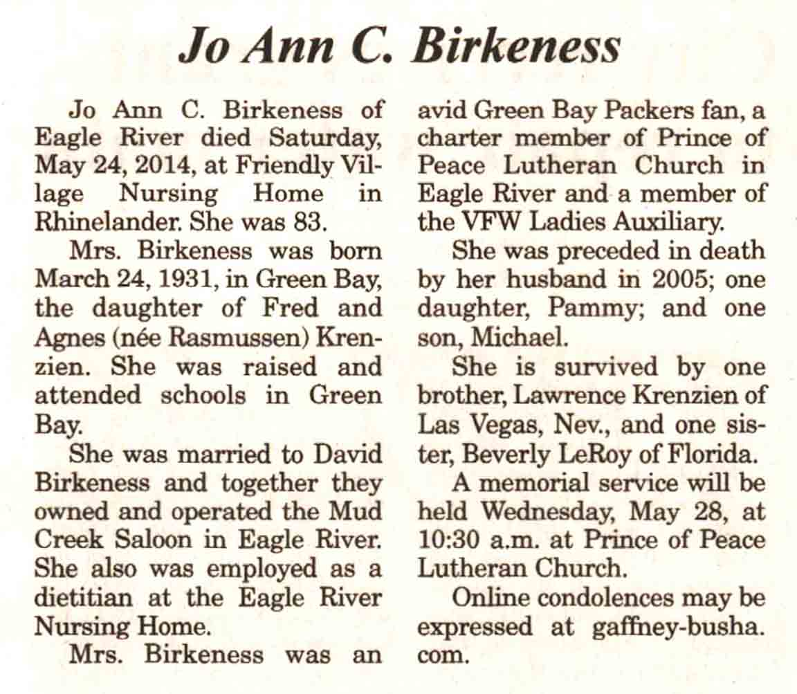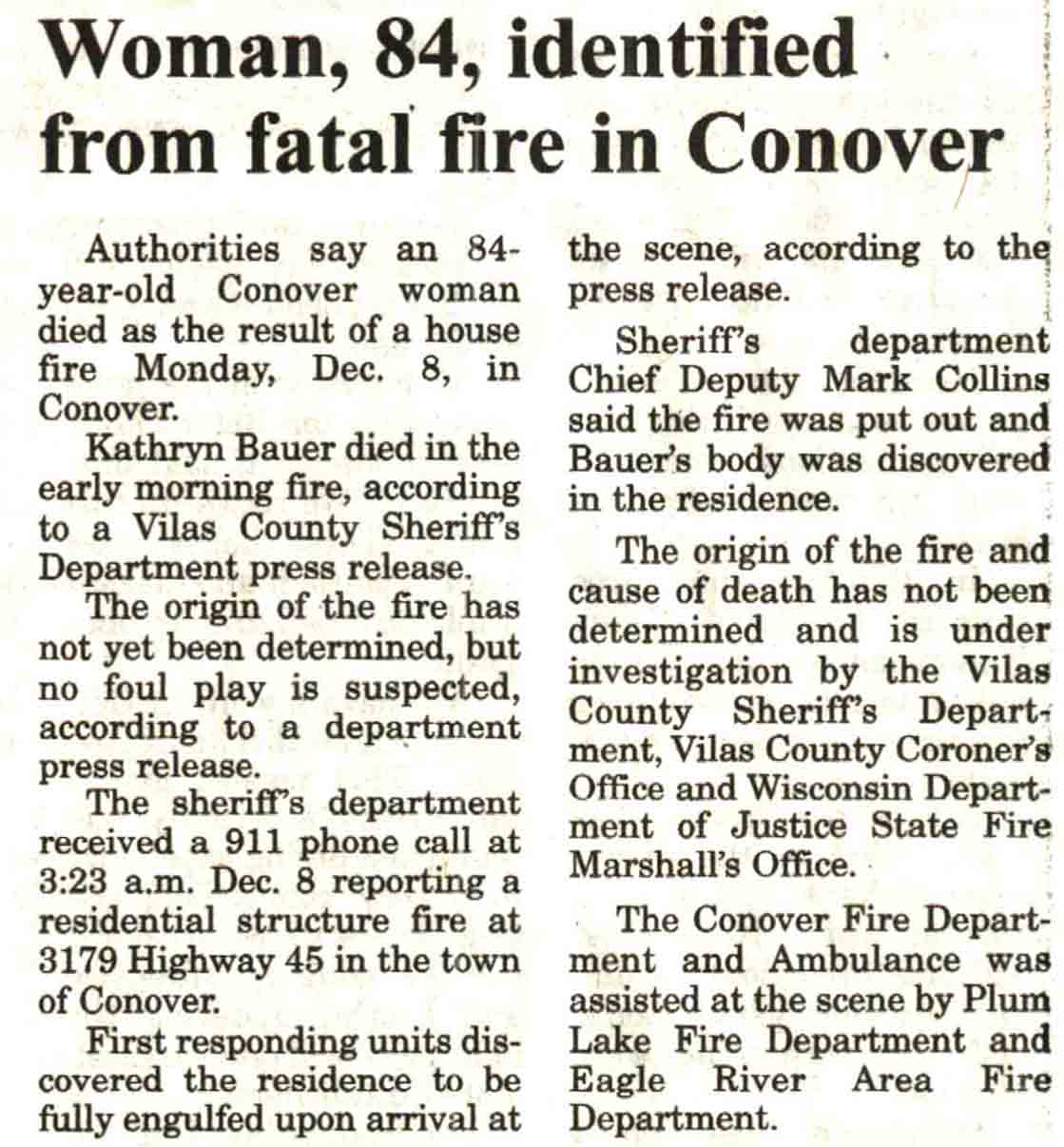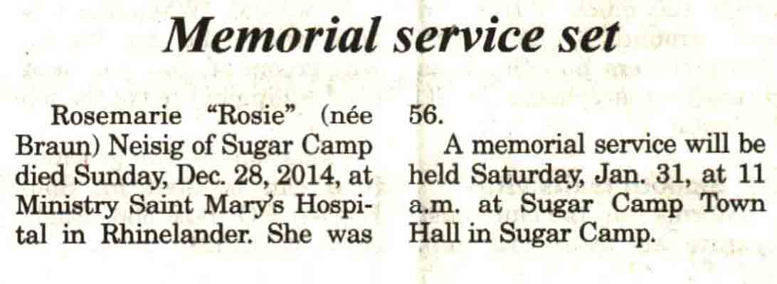 Vilas County, WI, Newspaper Obituaries