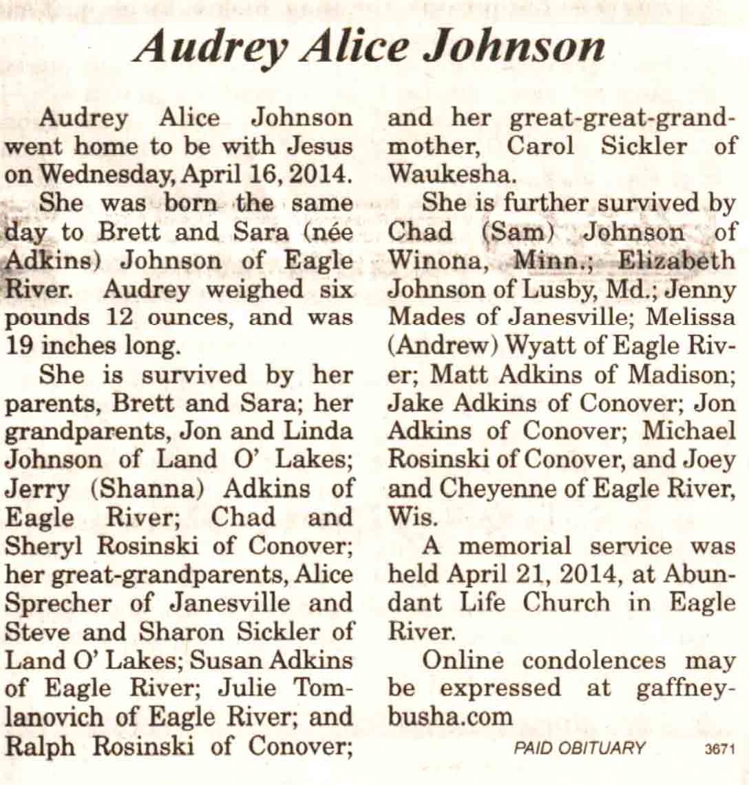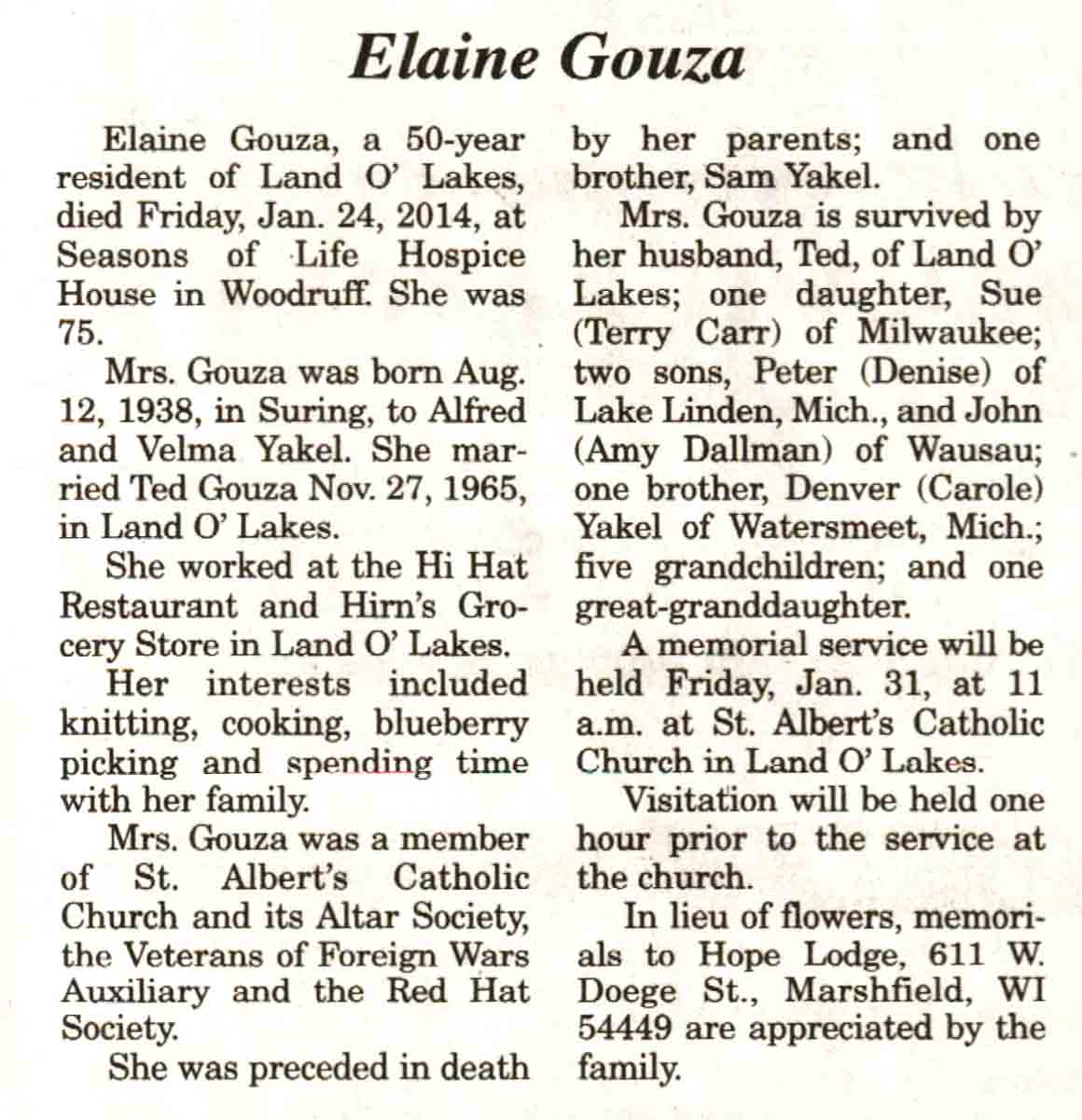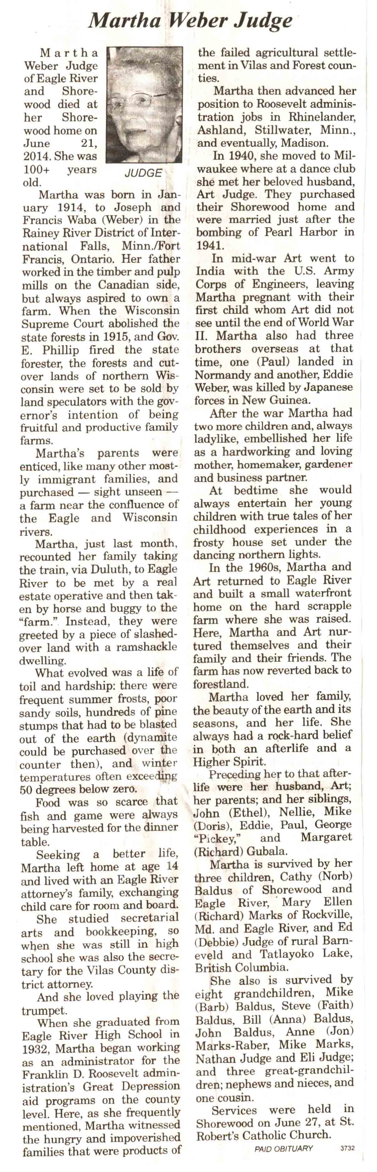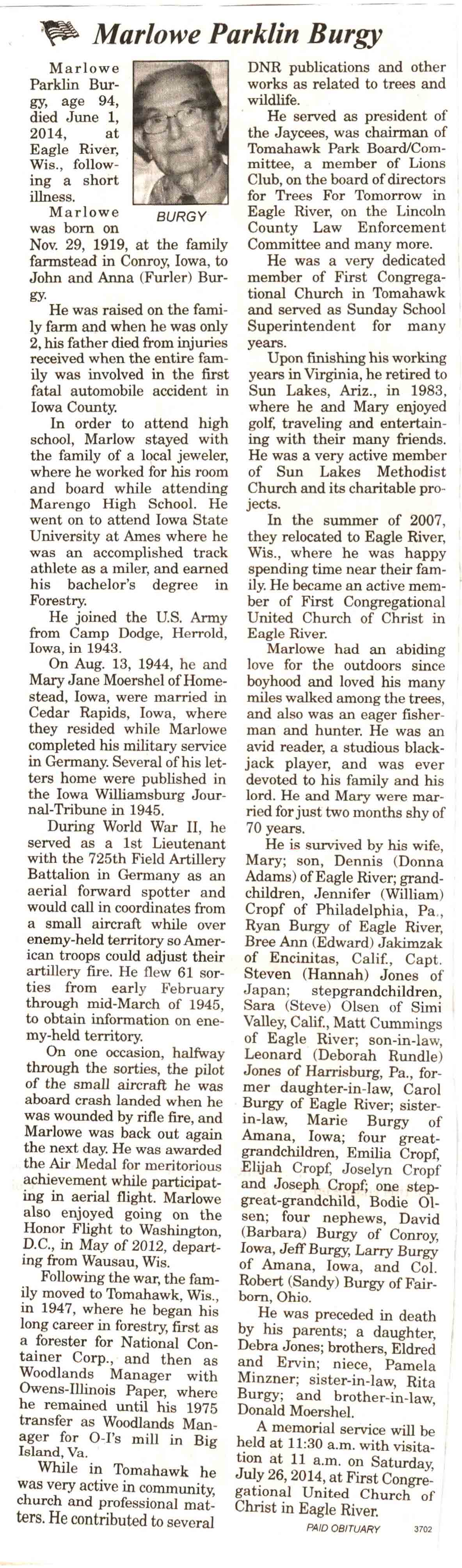 Vilas County, WI, Newspaper Obituaries