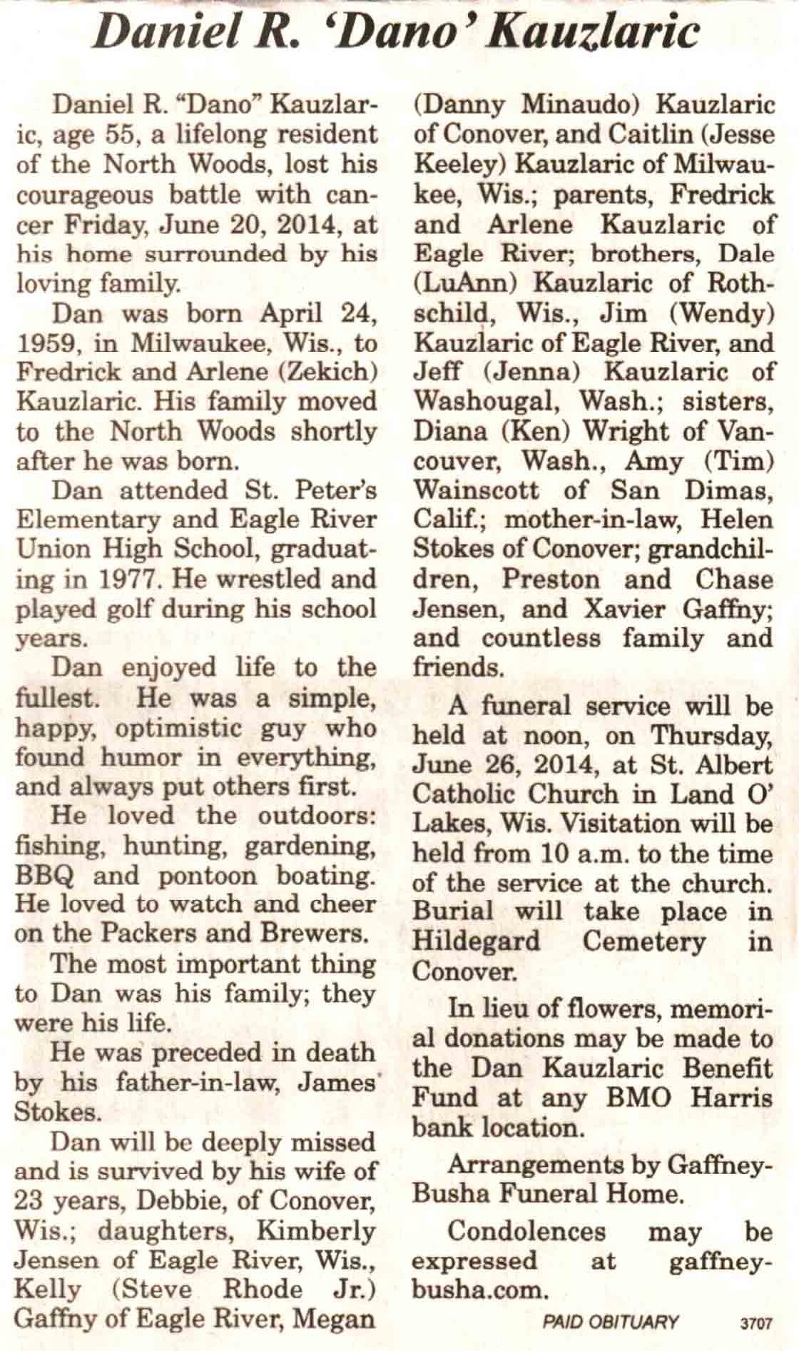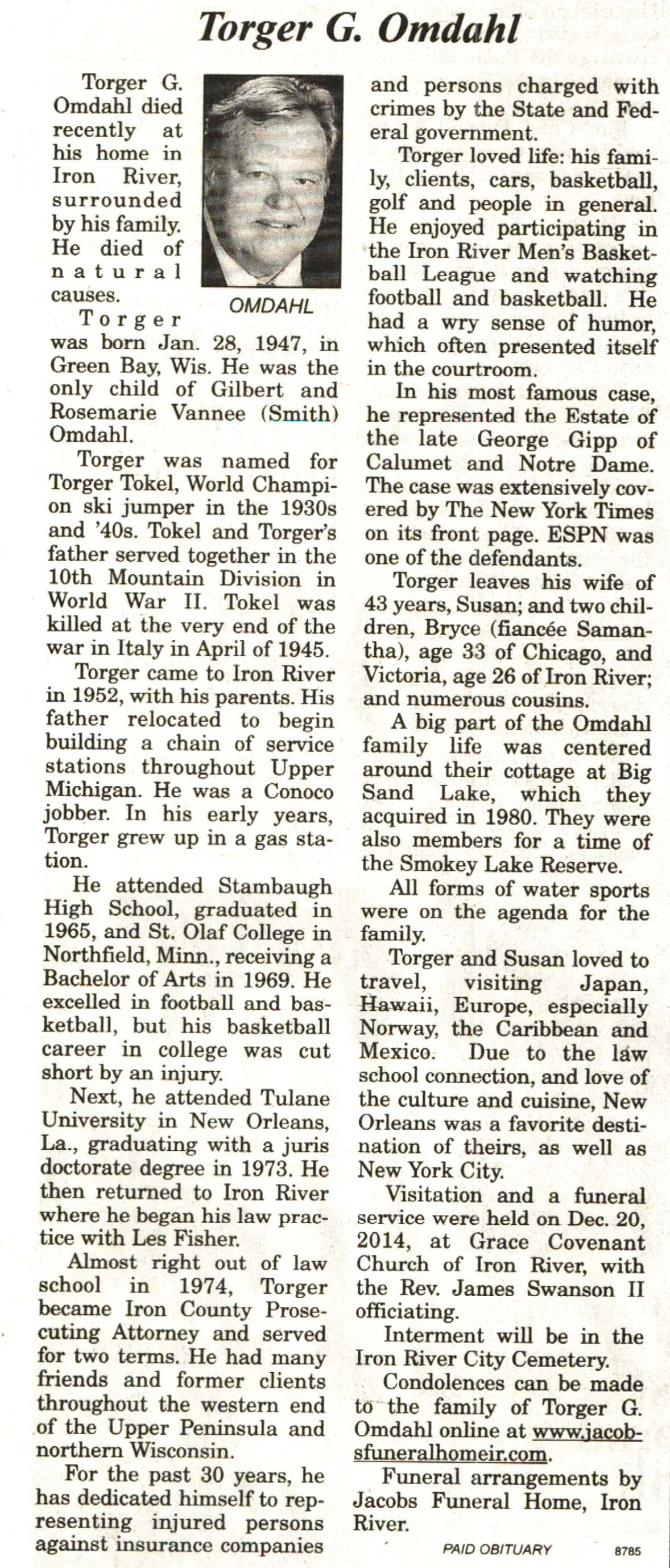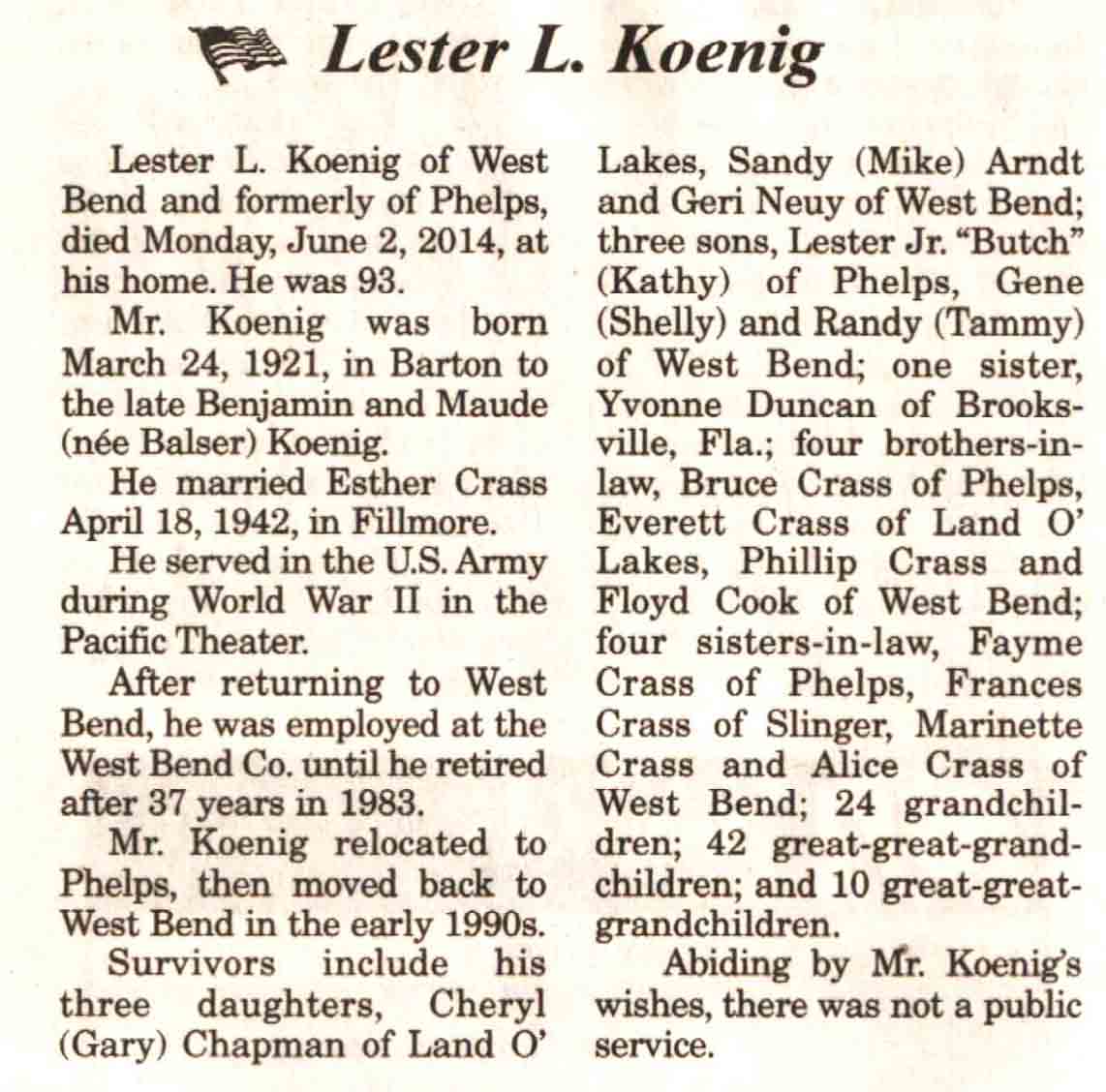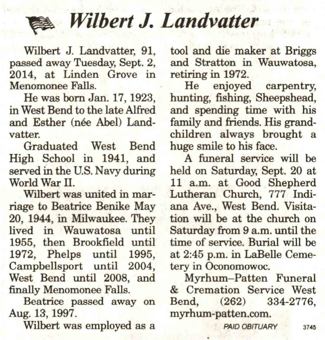 Vilas County, WI, Newspaper Obituaries