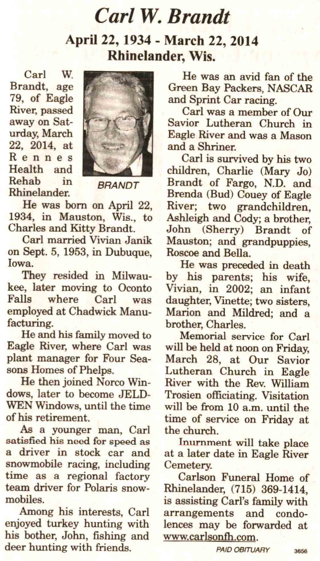| Brandt | Carl W | 22 Apr 1934 | 22 Mar 2014 | V N-R | 26 Mar 2014 | 4A |