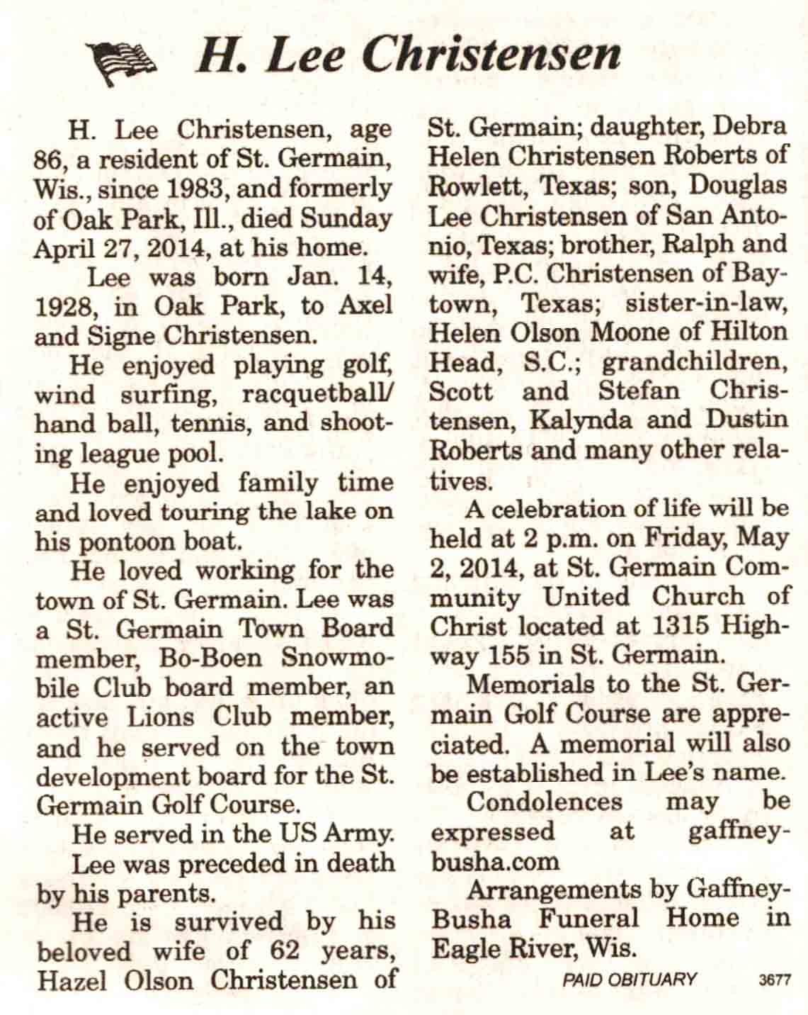 | Christensen | H Lee | 14 Jan 1928 | 27 Apr 2014 | V N-R | 30 Apr 2014 | 4A |