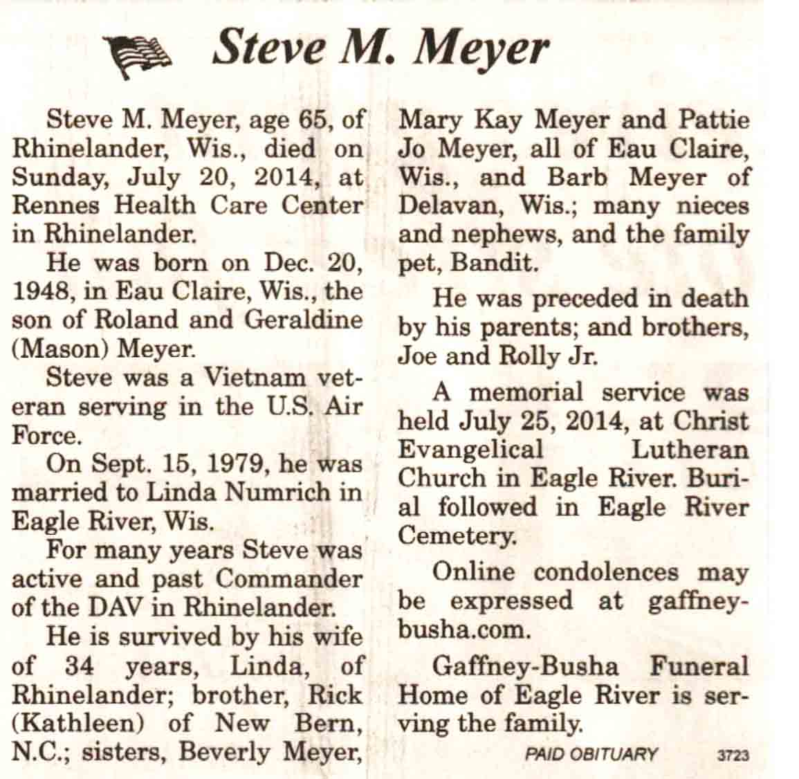 | Stevens | Debra 'Debbi' (Kertscher) | 29 Aug 1953 | 29 May 2014 | V N-R | 04 Jun 2014 | 4A |