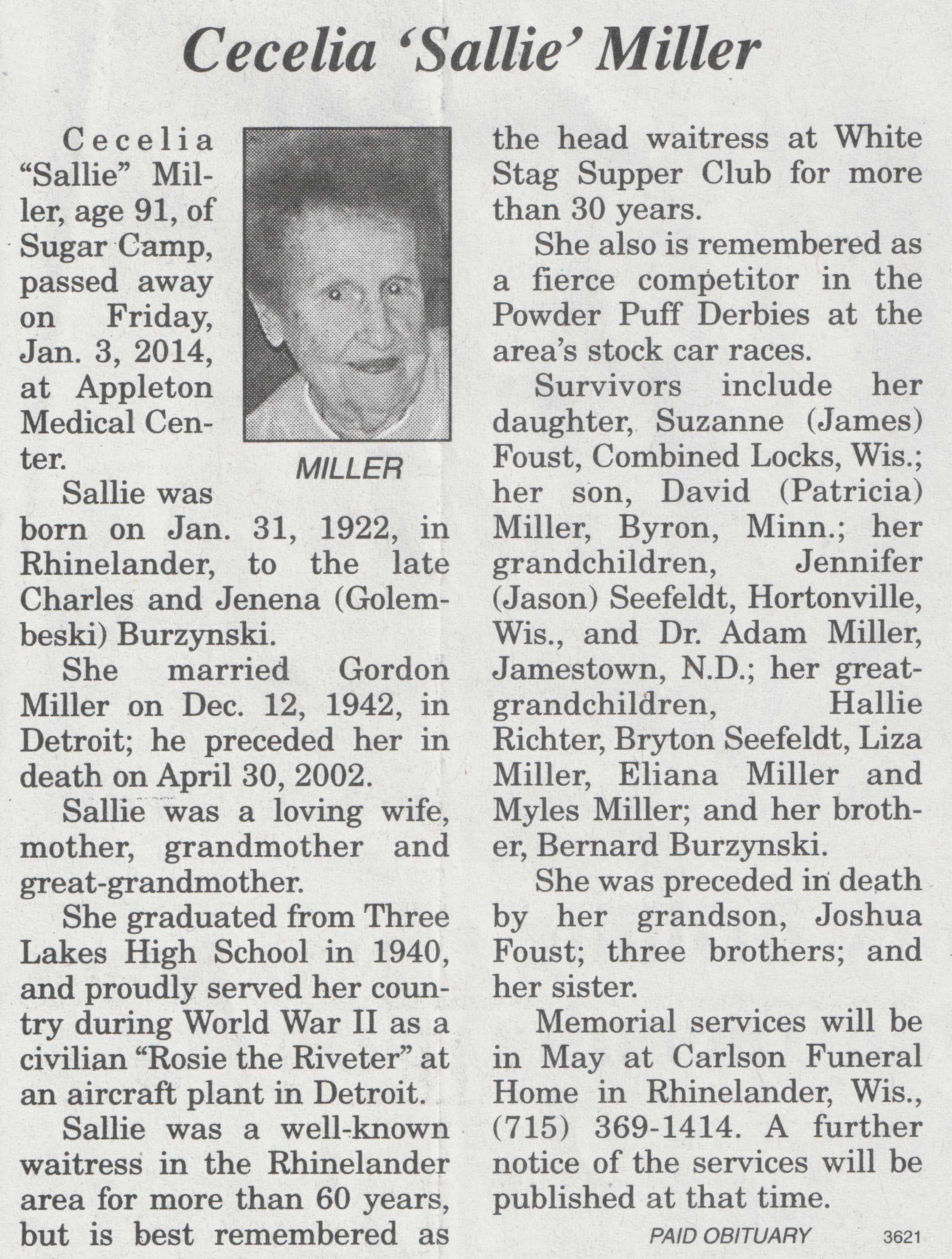 | Carlson | Margaret (Soder) | 30 Jun 1922 | 30 Jan 2014 | V N-R | 05 Feb 2014 | 4 |