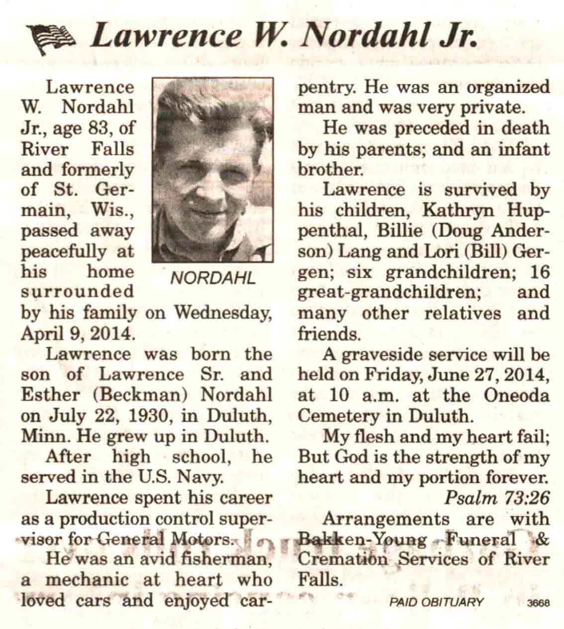 | Pace | Charles 'Chuck', Sr | 17 Mar 1937 | 07 Aug 2014 | V N-R | 13 Aug 2014 | 4A |