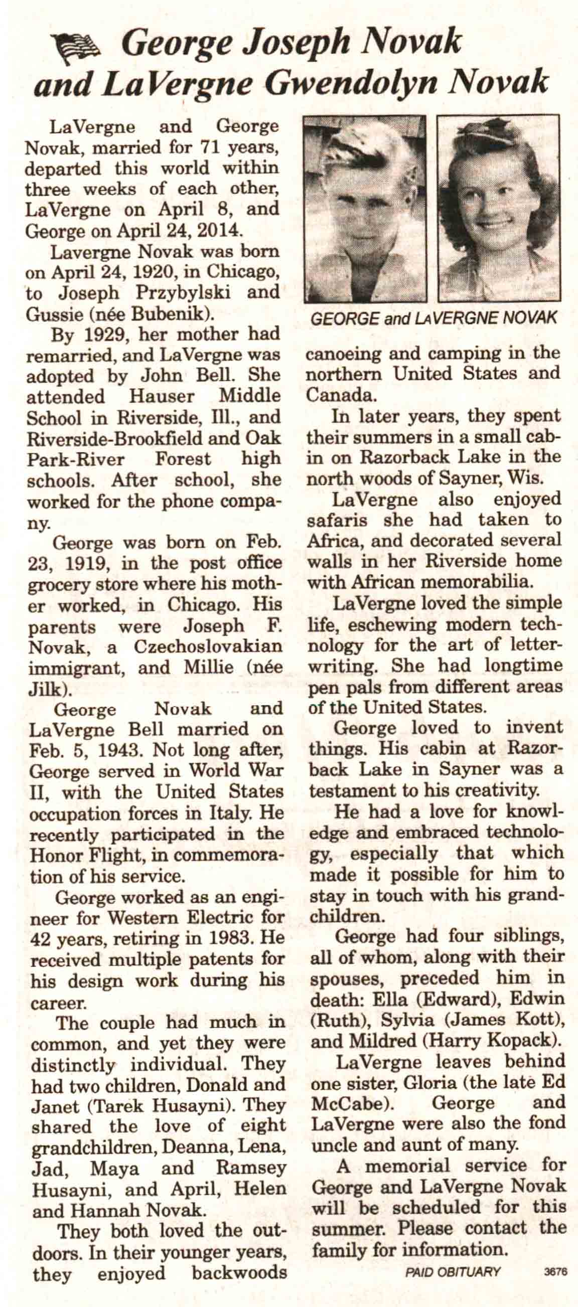 | Novak | LaVergne Gwendolyn (Przbylski) | 24 Apr 1920 | 08 Apr 2014 | V N-R | 30 Apr 2014 | 4A |