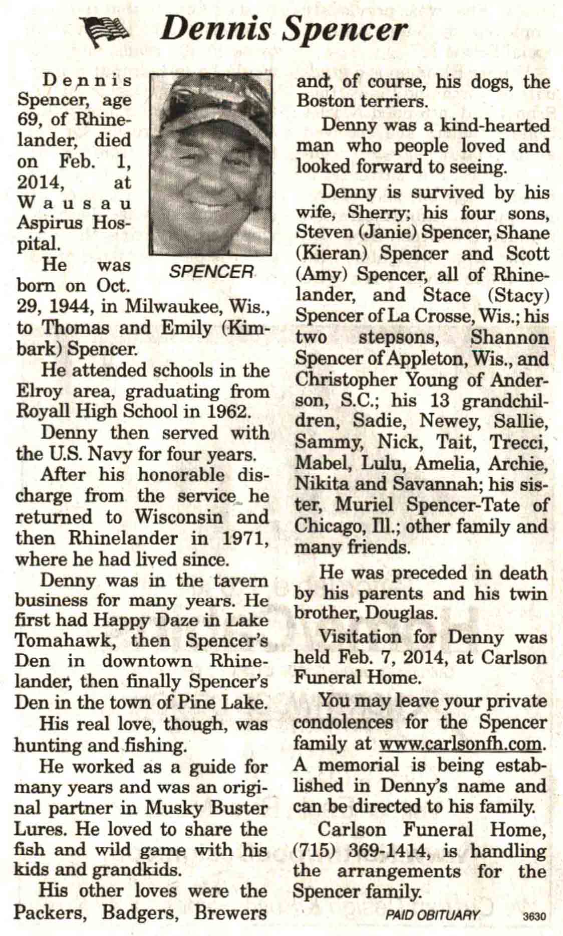 | Spencer | Dennis | 29 Oct 1944 | 01 Feb 2014 | V N-R | 12 Feb 2014 | 4A |