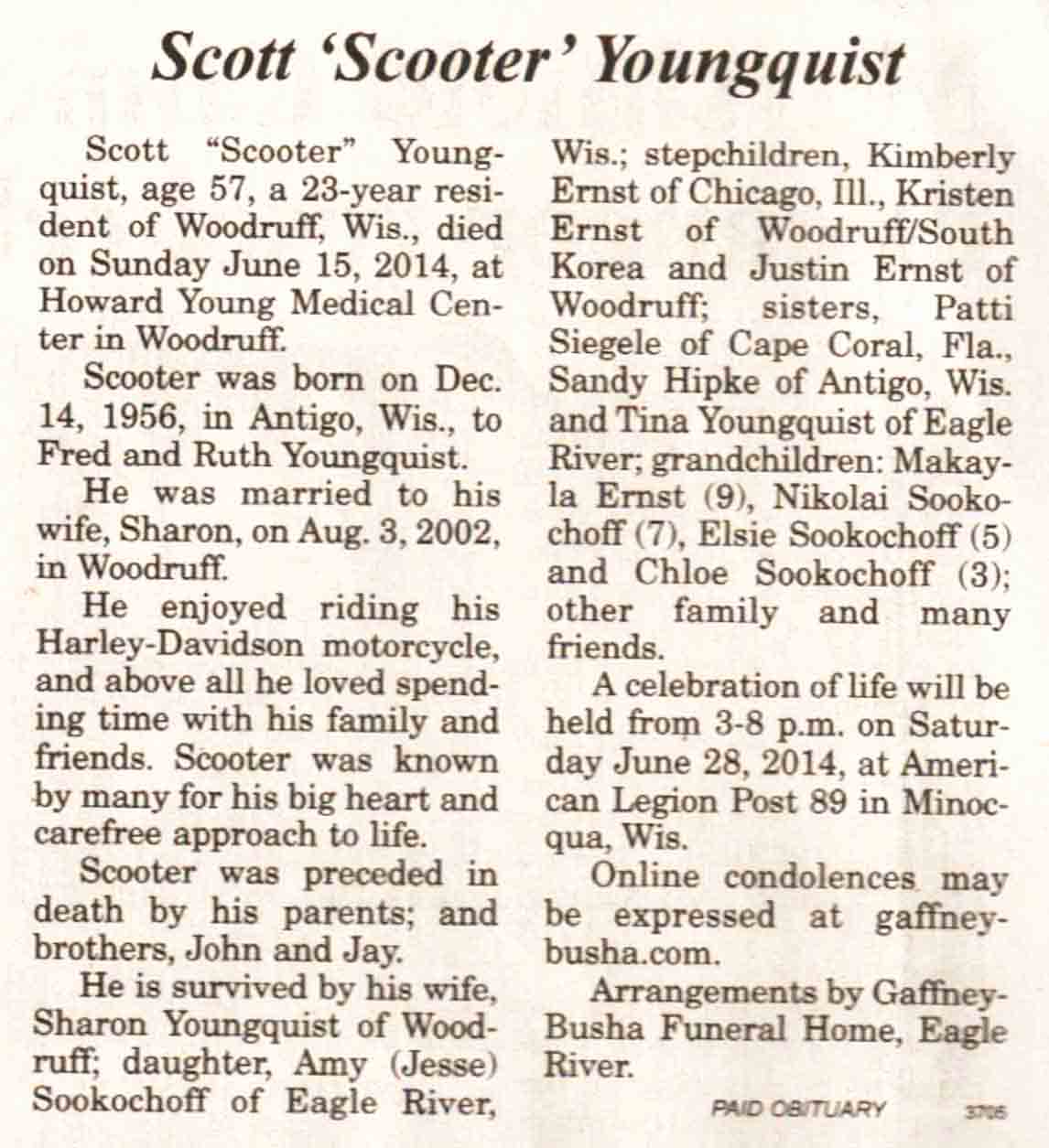 | Youngquist | Scott 'Scooter' | 14 Dec 1956 | 15 Jun 2014 | V N-R | 18 Jun 2014 | 4A |