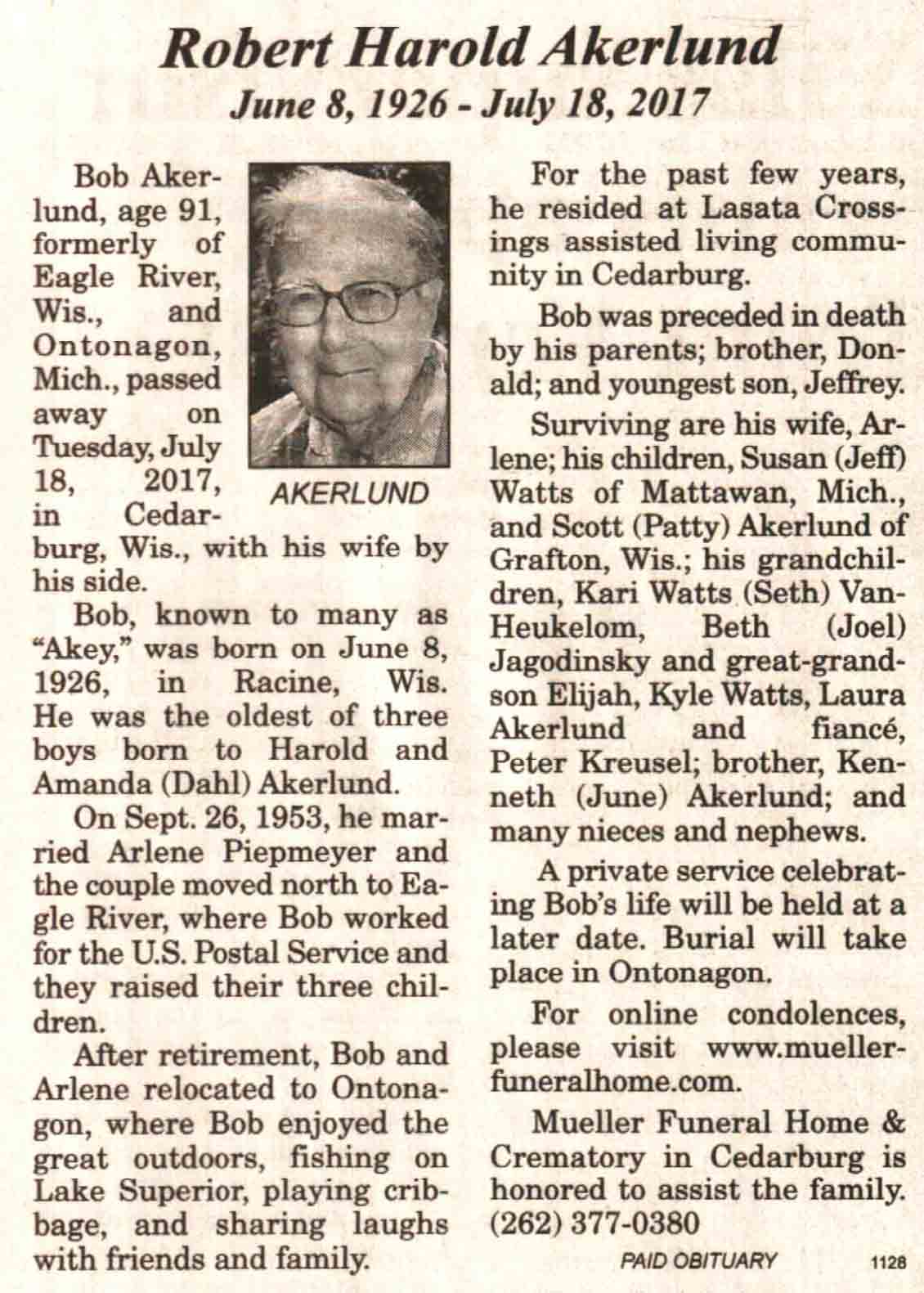 | Akerlund | Robert Harold 'Akey' | 08 Jun 1926 | 18 Jul 2017 | V N-R | 26 Jul 2017 | 4A |