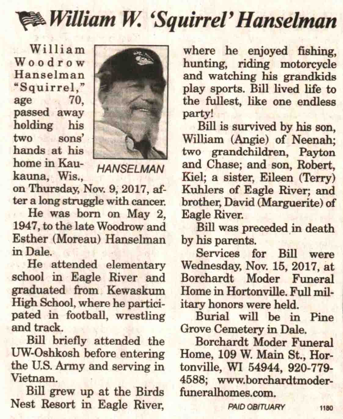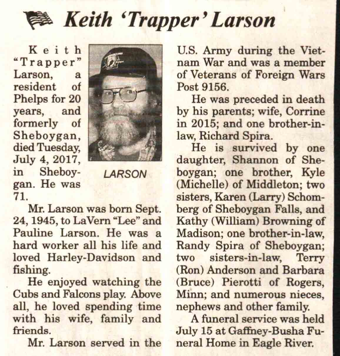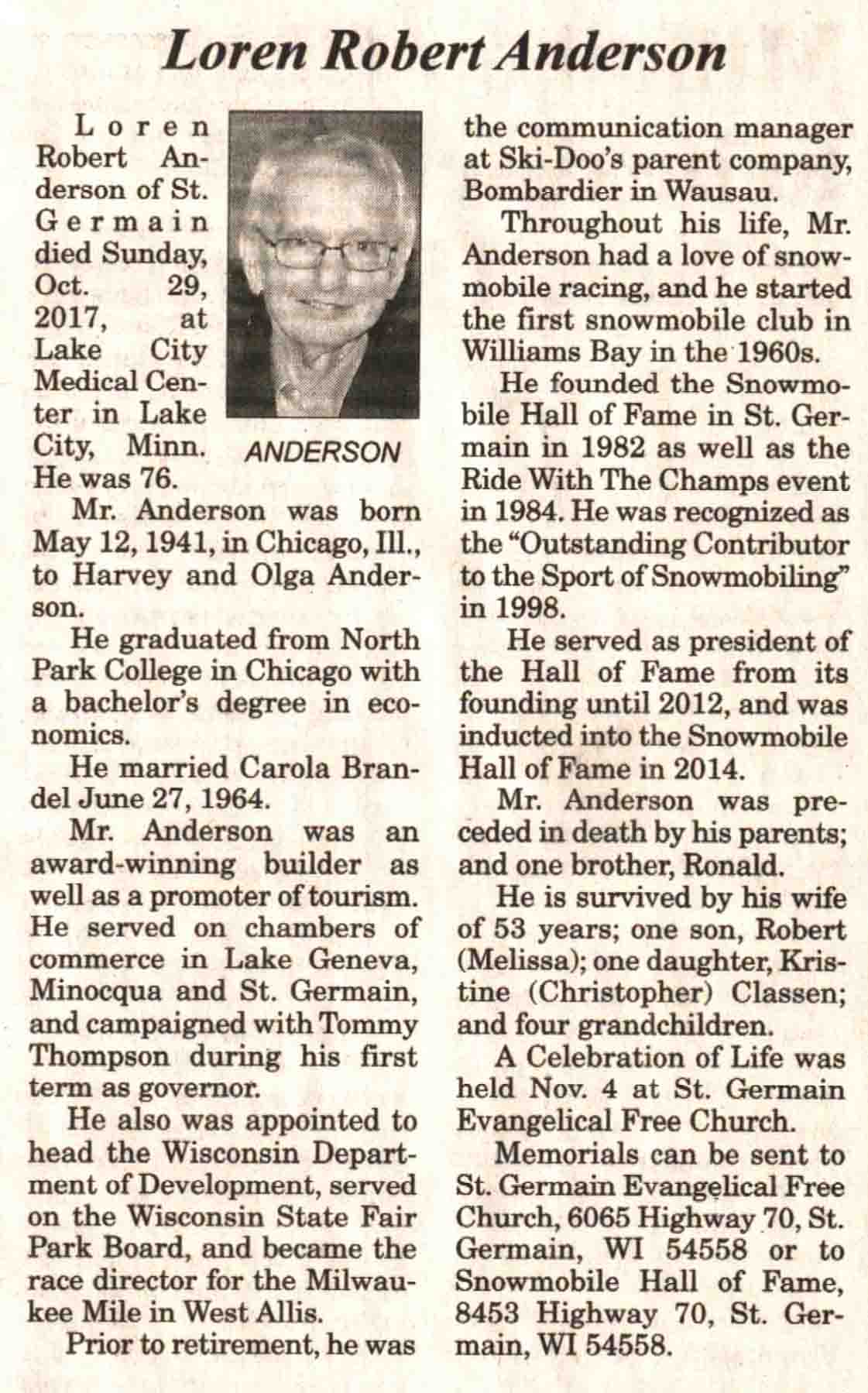 | Anderson | Loren Robert #2 | 12 May 1941 | 29 Oct 2017 | V N-R | 08 Nov 2017 | 4 |