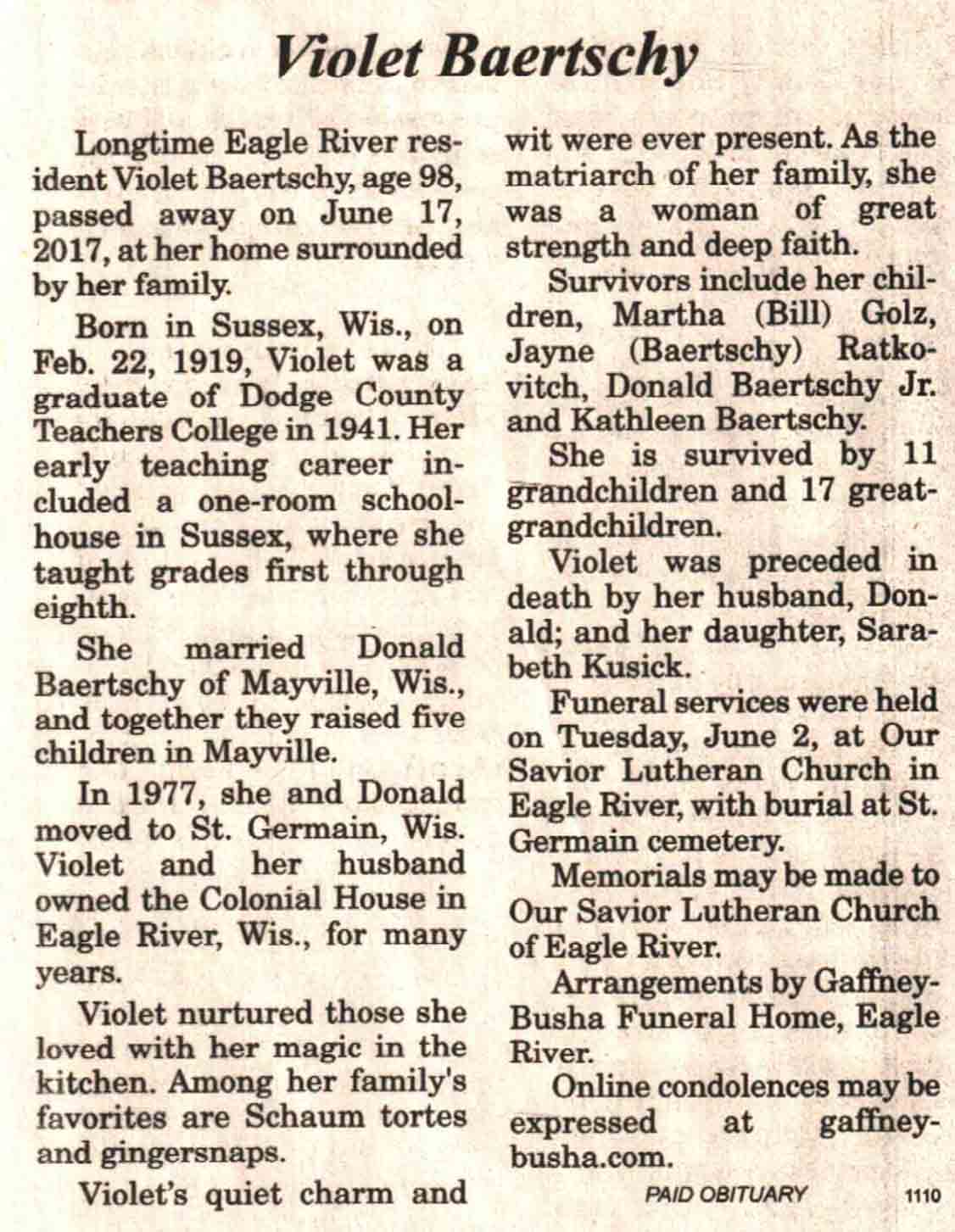 | Baertschy | Violet | 22 Feb 1919 | 17 Jun 2017 | V N-R | 21 Jun 2017 | 4A |