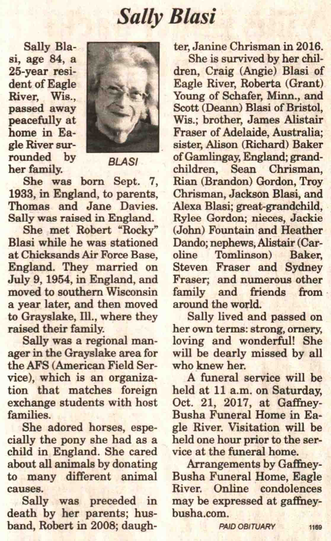 | Blasi | Sally (Davies) | 07 Sep 1933 | c Oct 2017 | V N-R | 18 Oct 2017 | 4A |