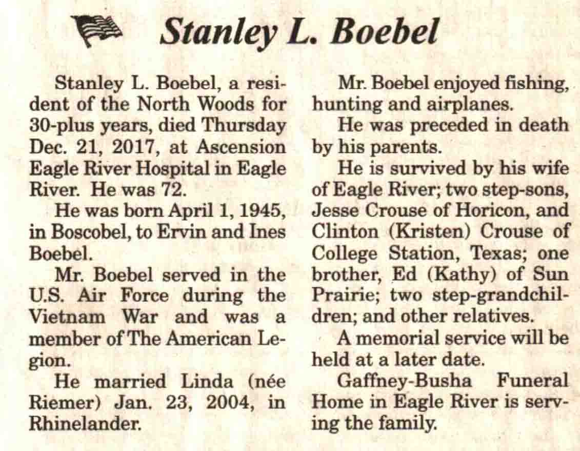 | Boebel | Stanley L | 01 Apr 1945 | 21 Dec 2017 | V N-R | 27 Dec 2017 | 4A |