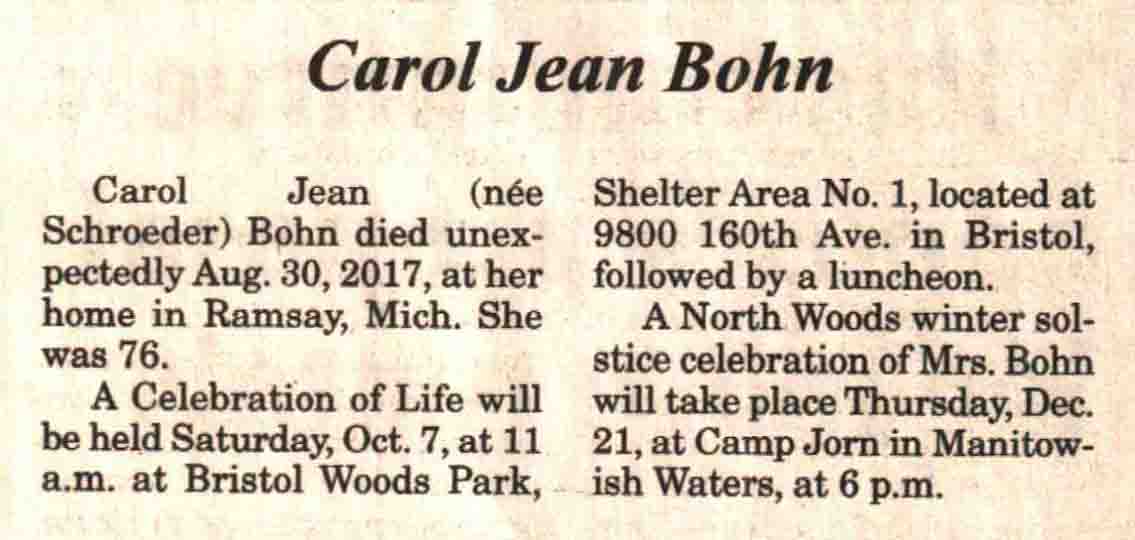 | Bohn | Carol Jean (Schroeder) #2 | c 1941 | 30 Aug 2017 | V N-R | 20 Sep 2017 | 4A |