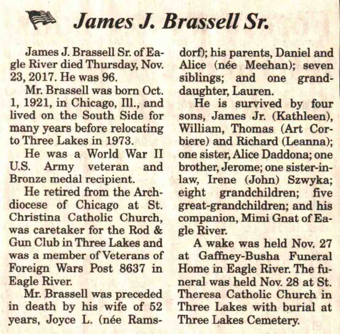 | Brasell | James J, Sr | 01 Oct 1921 | 23 Nov 2017 | V N-R | 29 Nov 2017 | 4 |