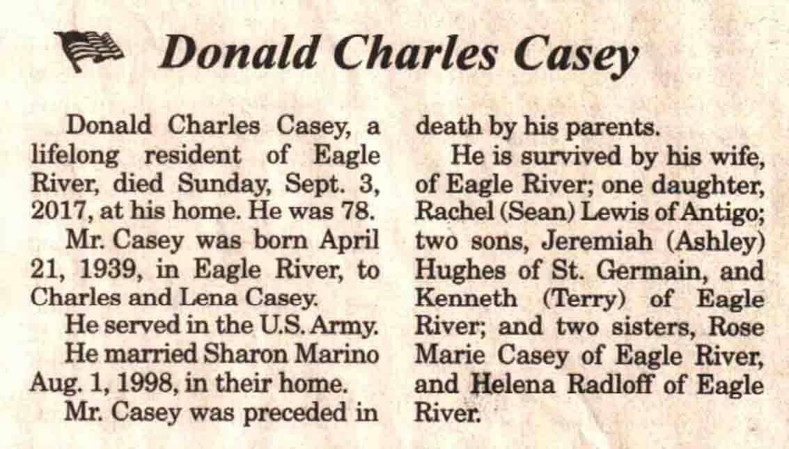| Casey | Donald Charles | 21 Apr 1939 | 03 Sep 2017 | V N-R | 13 Sep 2017 | 4A |
