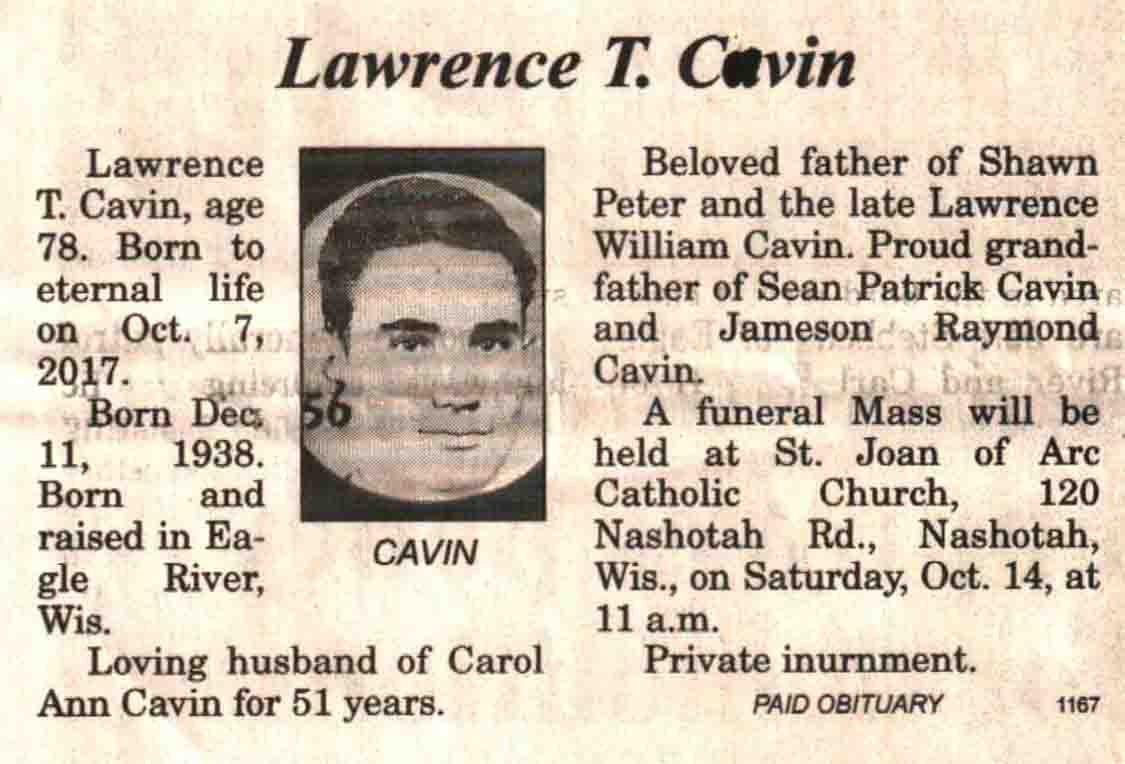 | Cavin | Lawrence T | 11 Dec 1938 | 07 Oct 2017 | V N-R | 11 Oct 2017 | 4A |