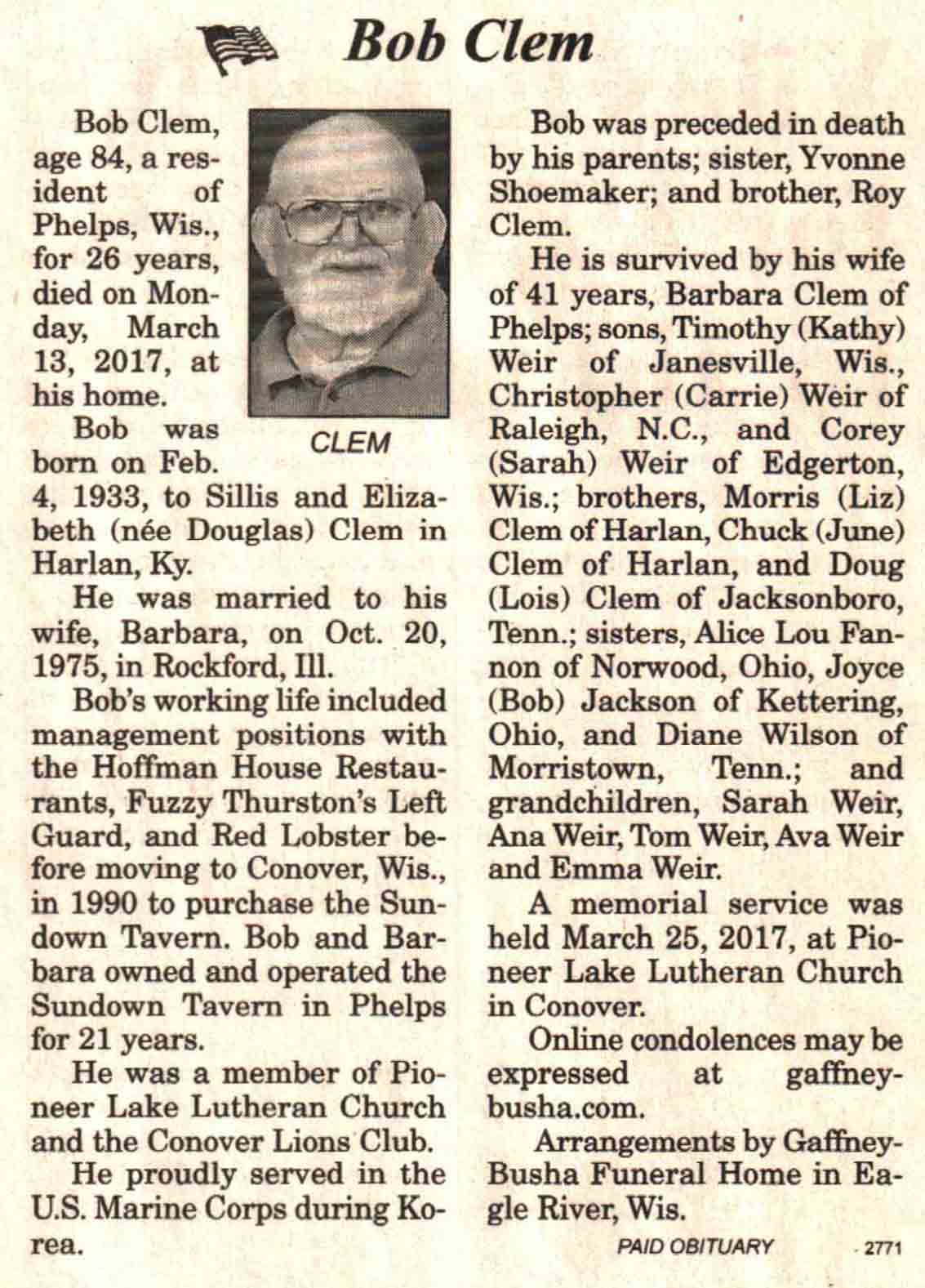 | Clem | Bob | 04 Feb 1933 | 13 Mar 2017 | V N-R | 29 Mar 2017 | 4A |