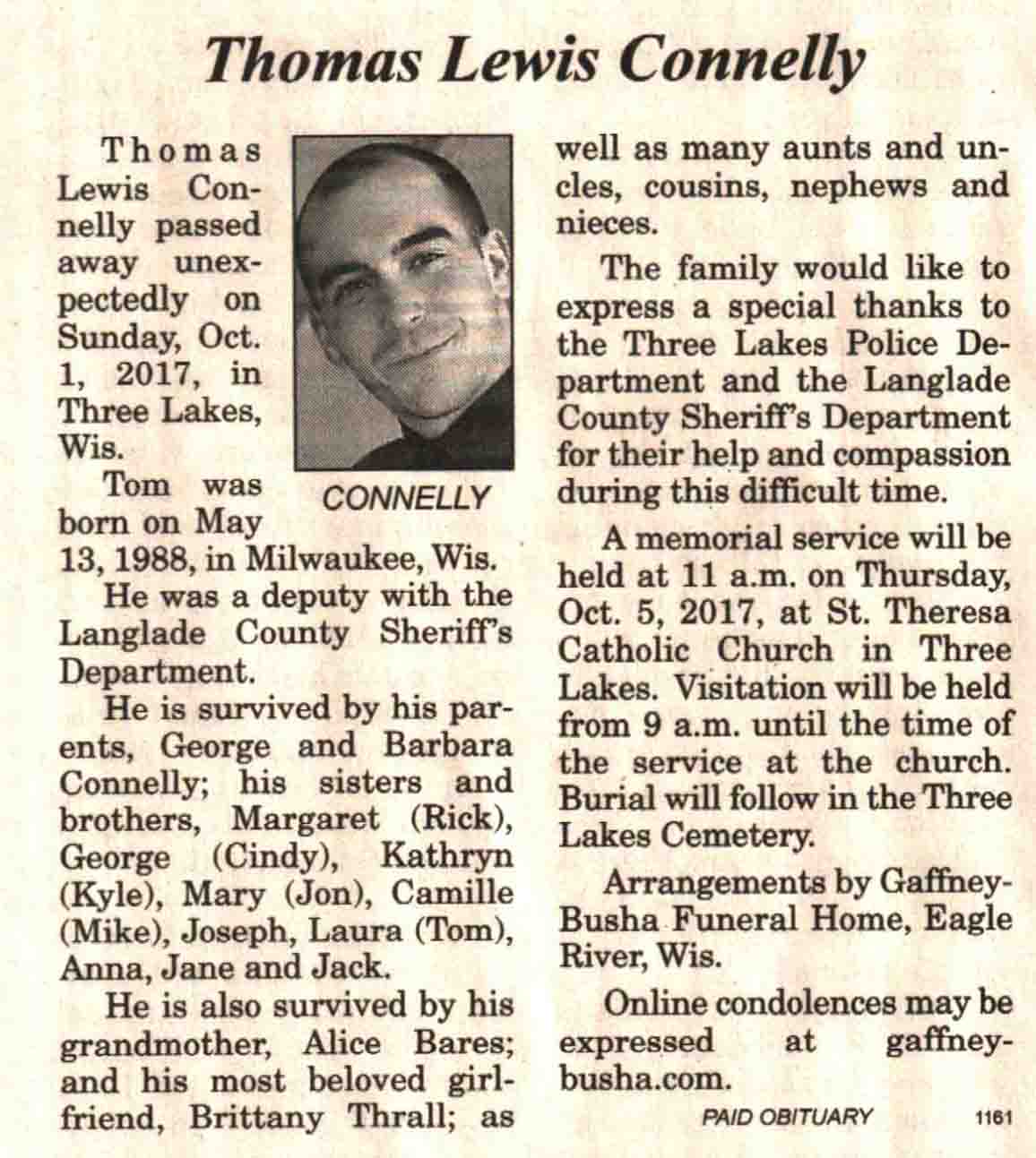 | Connelly | Thomas Lewis | 13 May 1988 | 01 Oct 2017 | V N-R | 04 Oct 2017 | 4A |