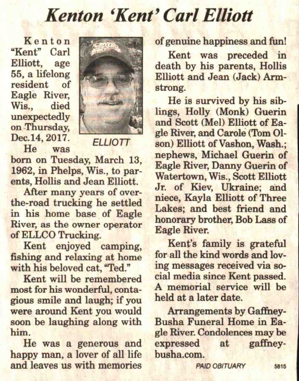 | Elliott | Kenton Carl 'Kent' | 13 Mar 1962 | 14 Dec 2017 | V N-R | 20 Dec 2017 | 4 |