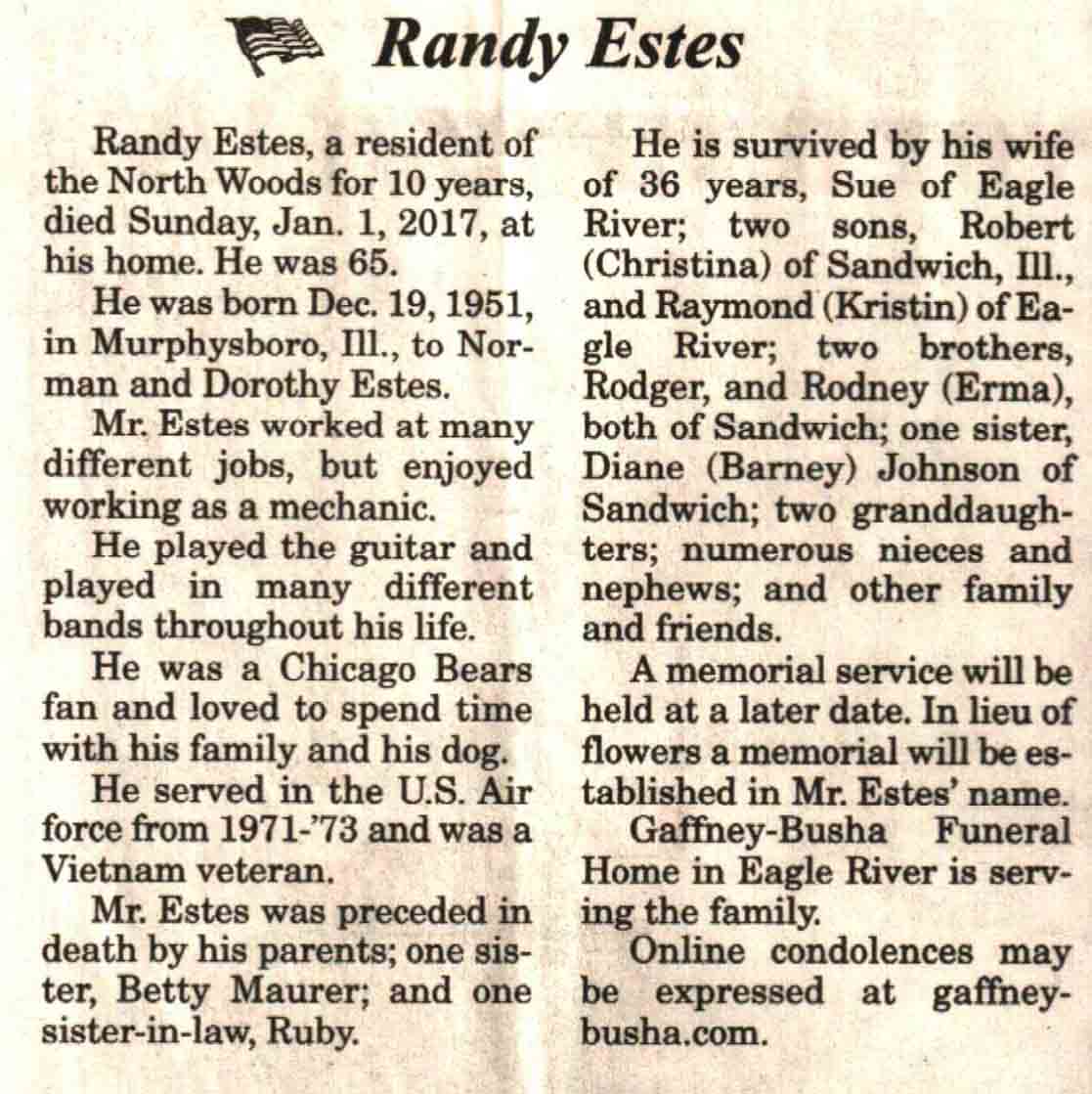 | Estes | Randy | 19 Dec 1951 | 01 Jan 2017 | V N-R | 04 Jan 2017 | 4 |