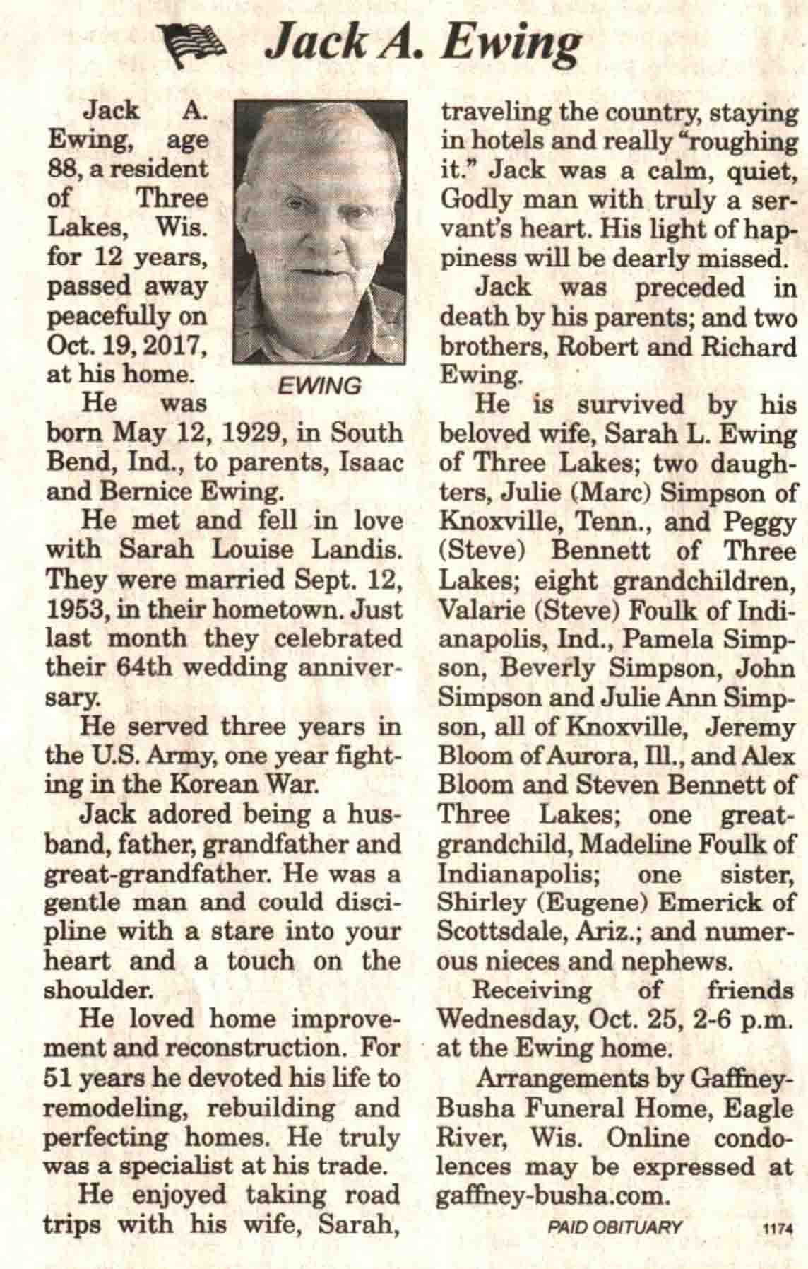 | Ewing | Jack A | 12 May 1929 | 19 Oct 2017 | V N-R | 25 Oct 2017 | 4 |