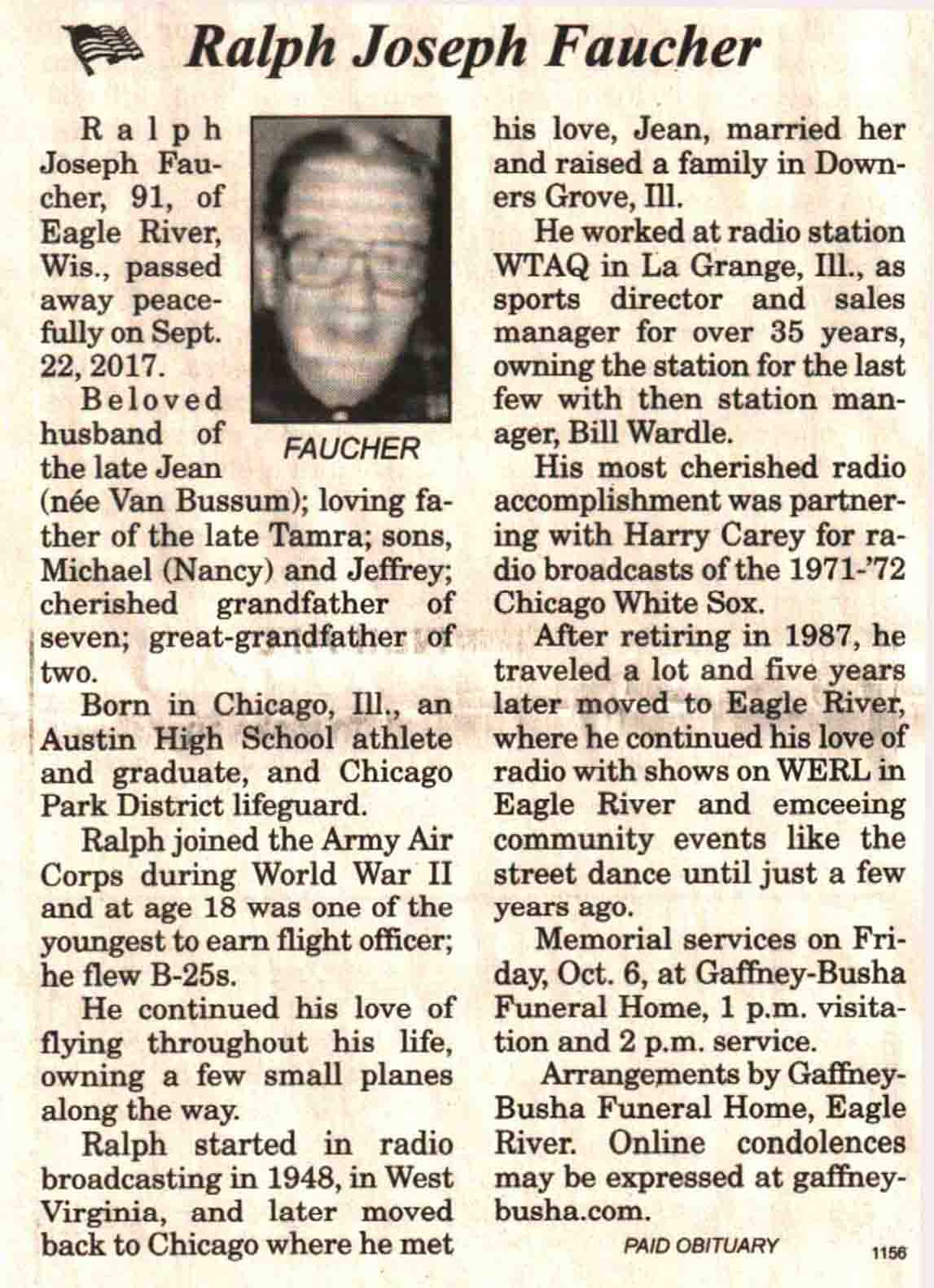 | Faucher | Ralph Joseph | c 1926 | 22 Sep 2017 | V N-R | 04 Oct 2017 | 4A |