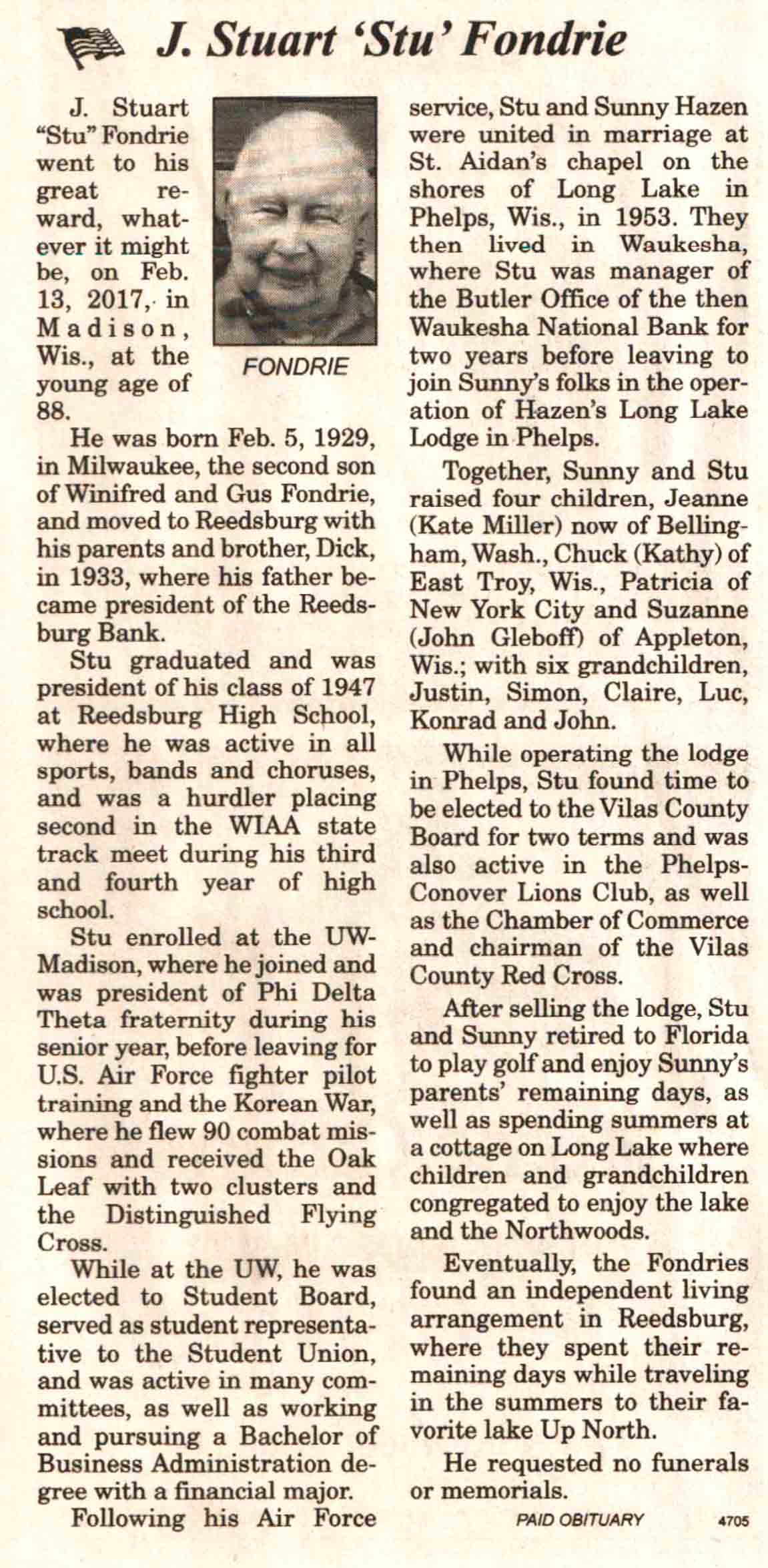 | Fondrie | J Stuart 'Stu' | 05 Feb 1929 | 13 Feb 2017 | V N-R | 22 Feb 2017 | 4A |