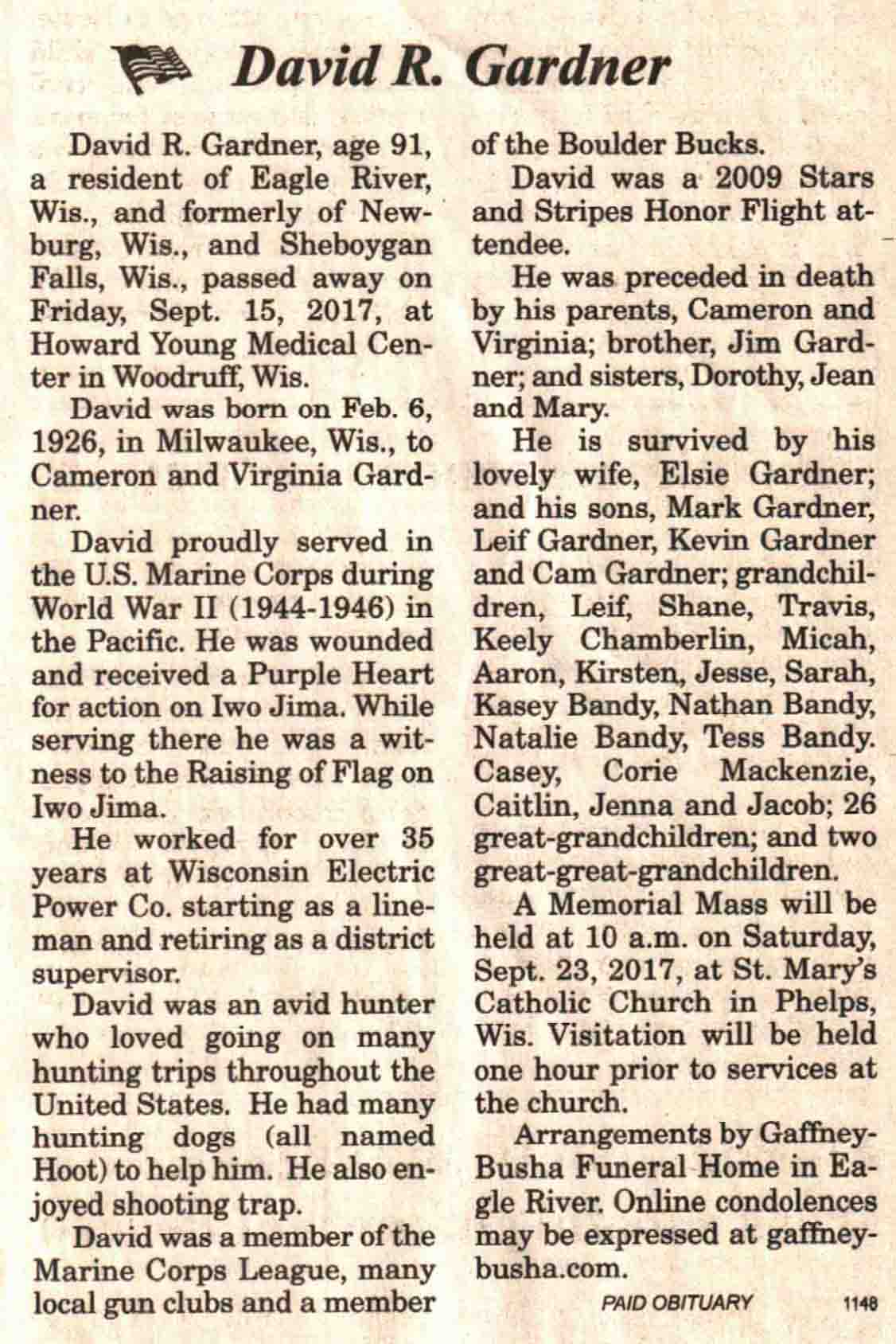 | Gardner | David R | 26 Feb 1926 | 15 Sep 2017 | V N-R | 20 Sep 2017 | 4A |
