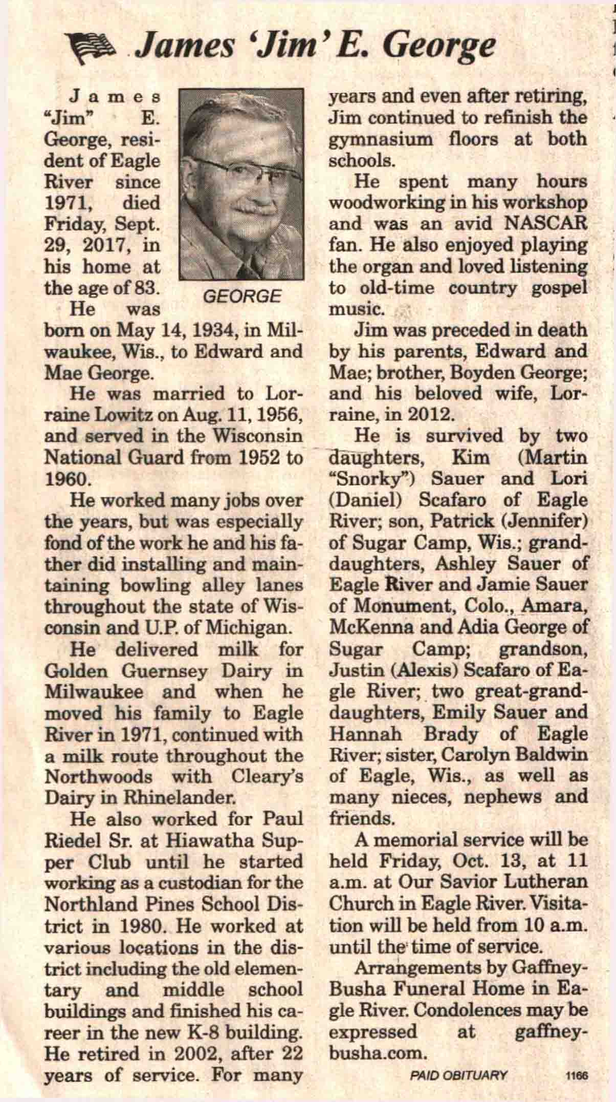 | George | James E 'Jim' | 14 May 1934 | 29 Sep 2017 | V N-R | 11 Oct 2017 | 4A |