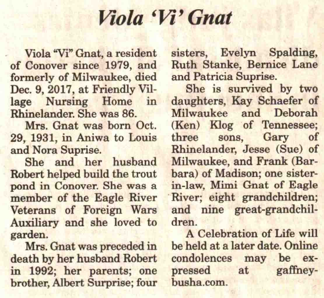 | Gnat | Viola 'Vi' (Suprise) | 29 Oct 1931 | 09 Dec 2017 | V N-R | 13 Dec 2017 | 4 |