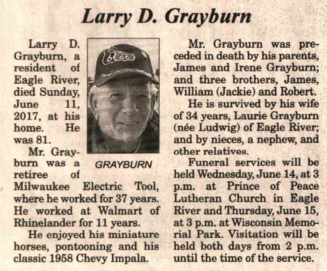 | Grayburn | Larry D | c 1936 | 11 Jun 2017 | V N-R | 14 Jun 2017 | 4A |