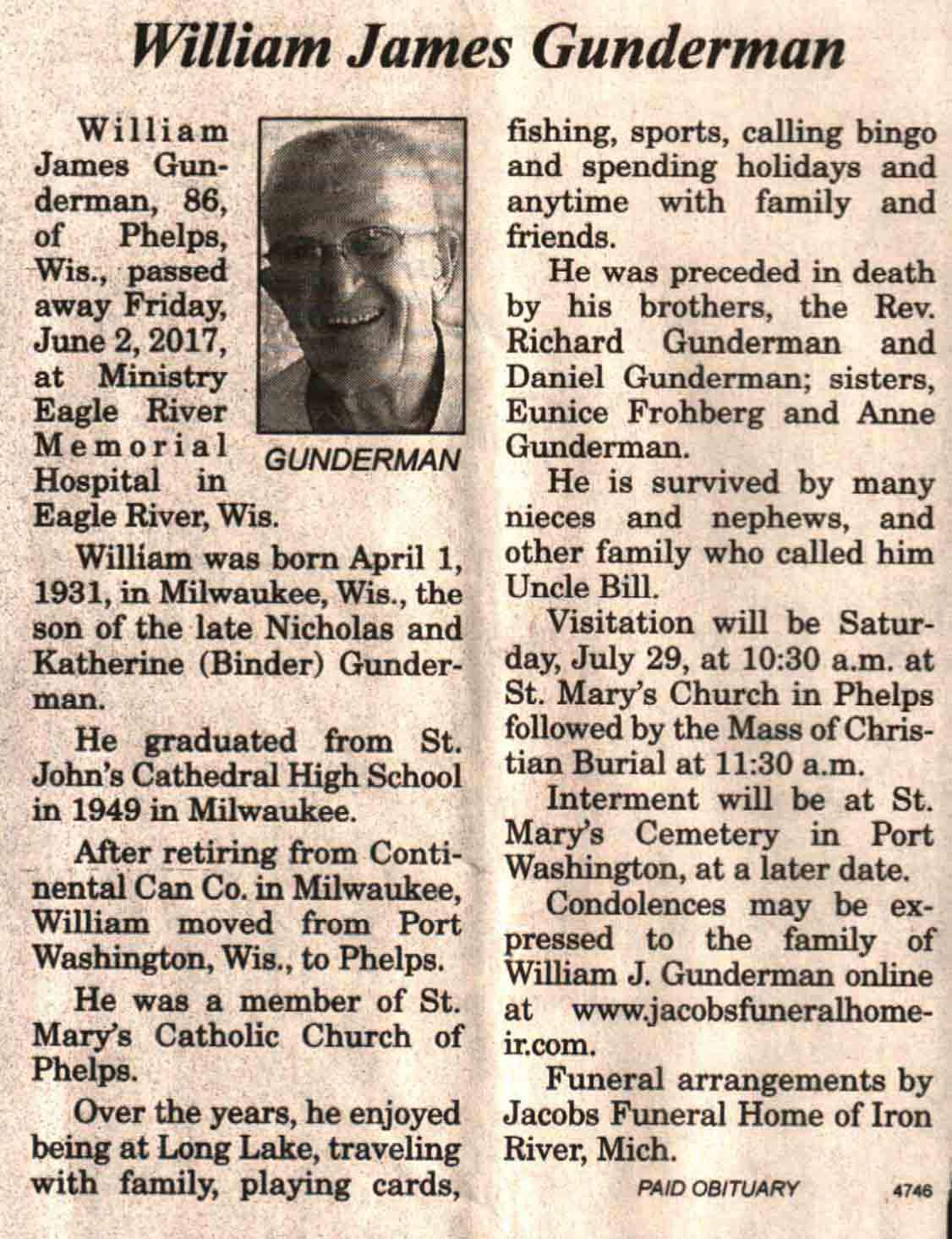 | Gunderman | William James | 01 Apr 1931 | 02 Jun 2017 | V N-R | 14 Jun 2017 | 4A |