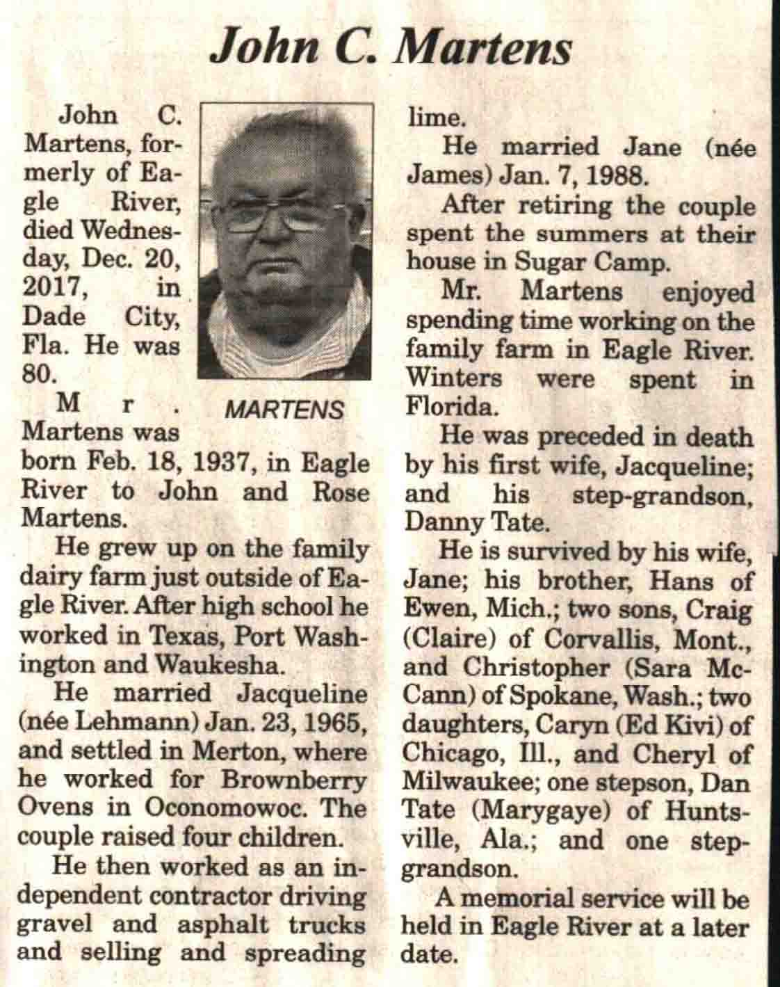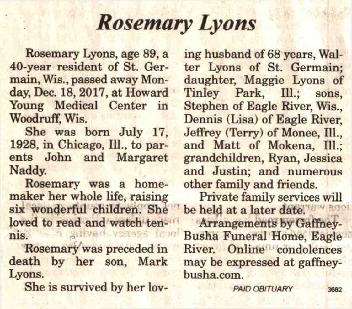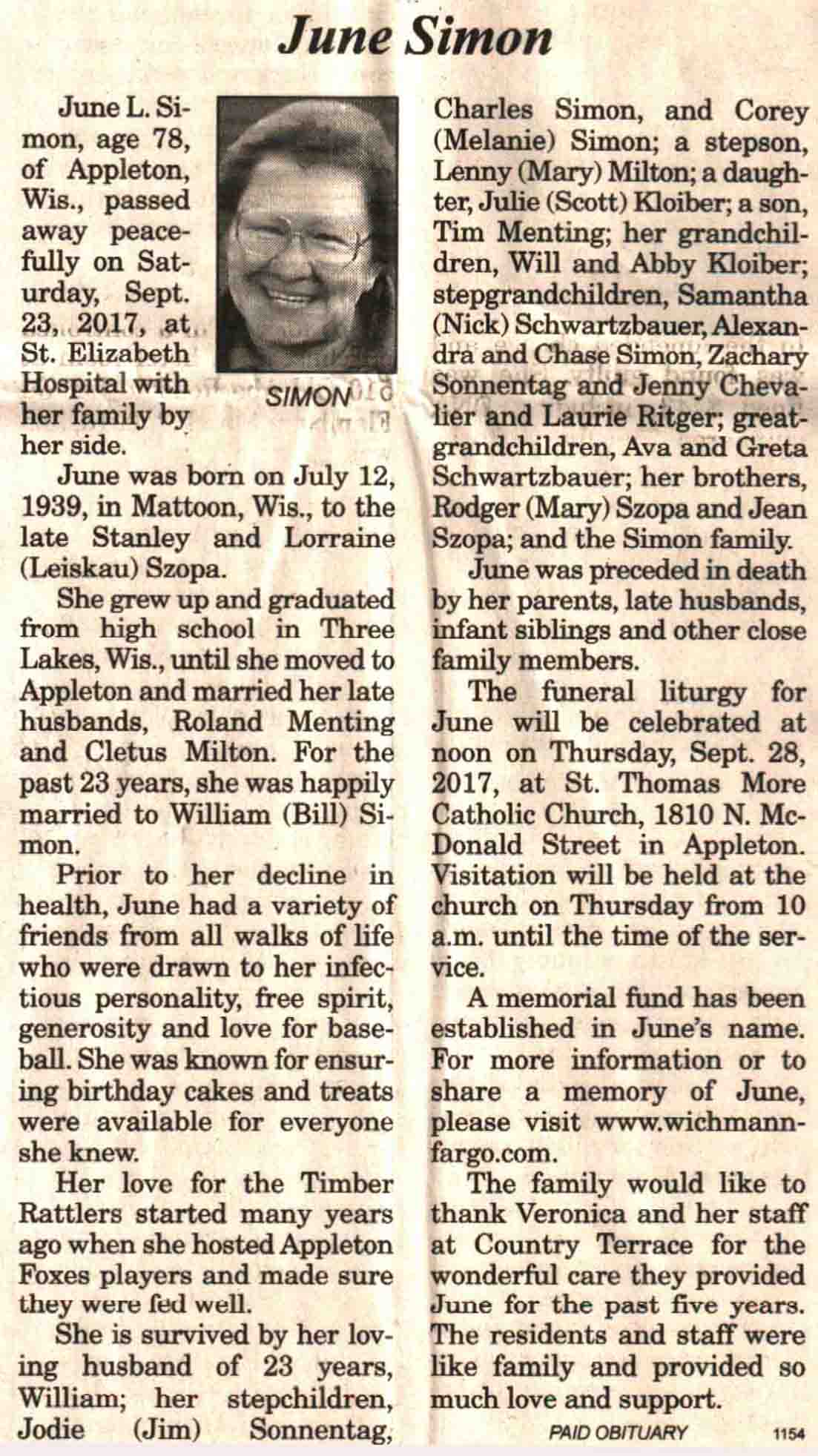 County, WI, Newspaper Obituaries