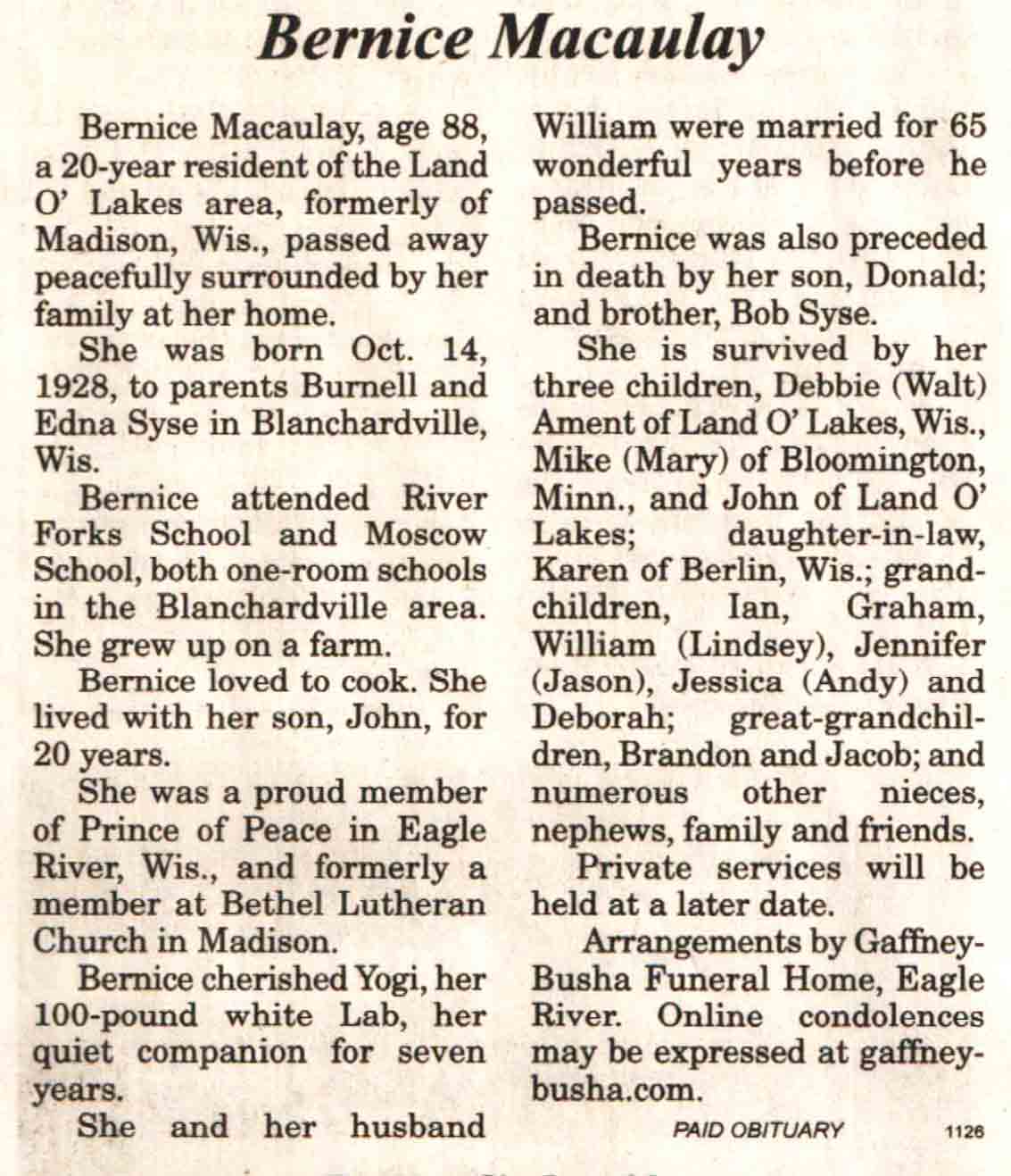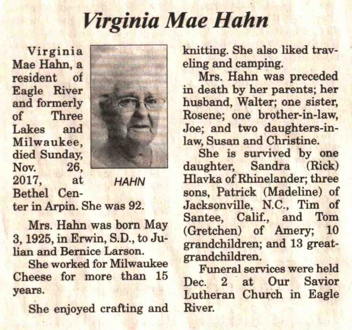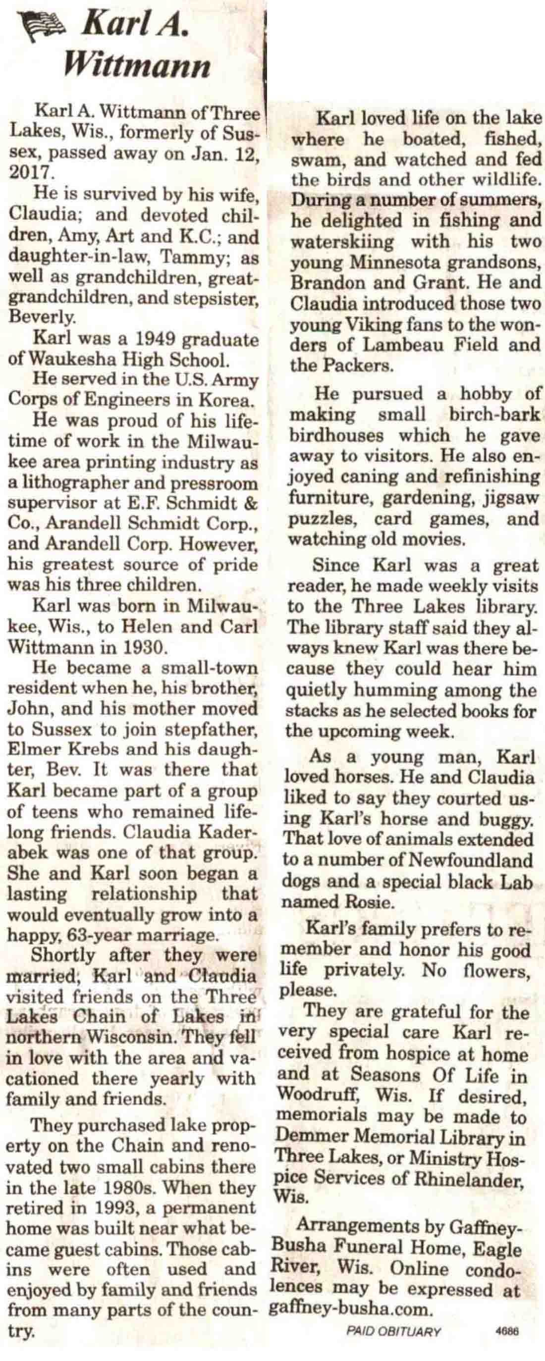 County, WI, Newspaper Obituaries