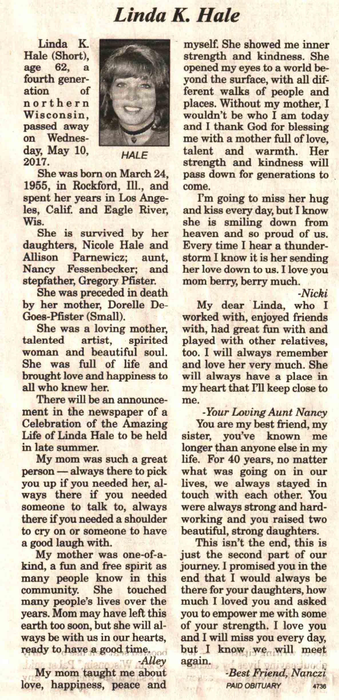 | Radtke | Renee Marie (Hegemann) | 16 Apr 1959 | 05 May 2017 | V N-R | 10 May 2017 | 4 |