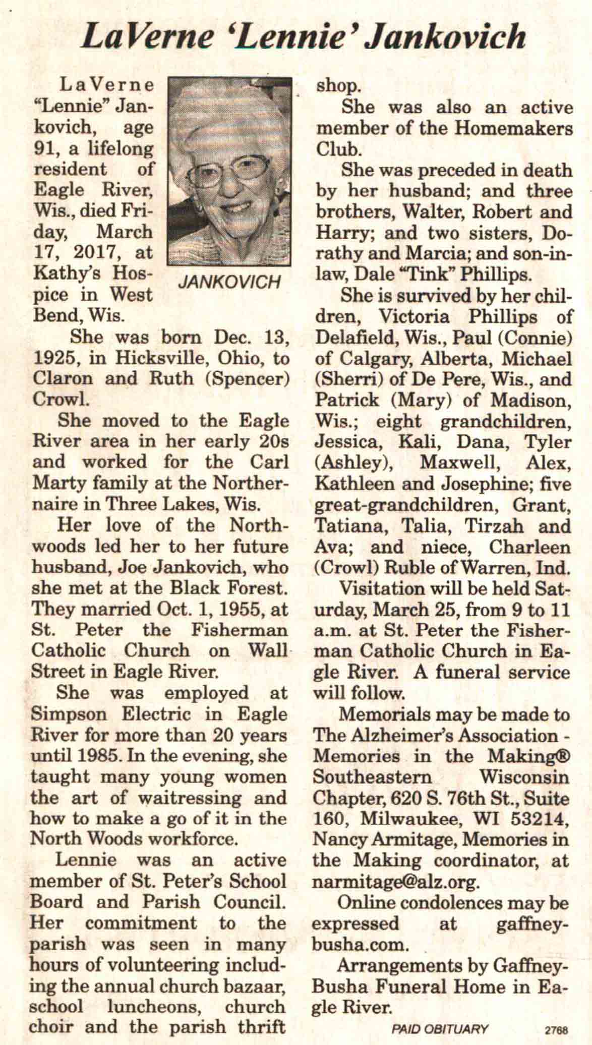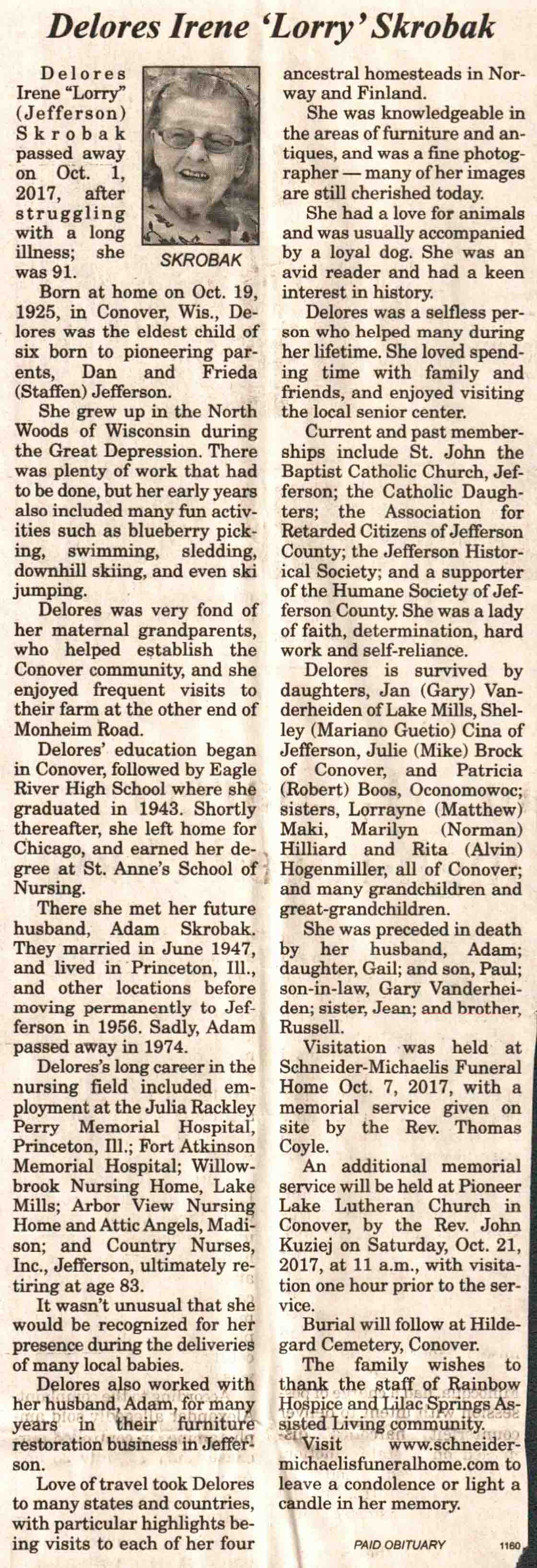 | Skrobak | Delores Irene 'Lorry' (Jefferson) | 19 Oct 1925 | 01 Oct 2017 | V N-R | 18 Oct 2017 | 4A |