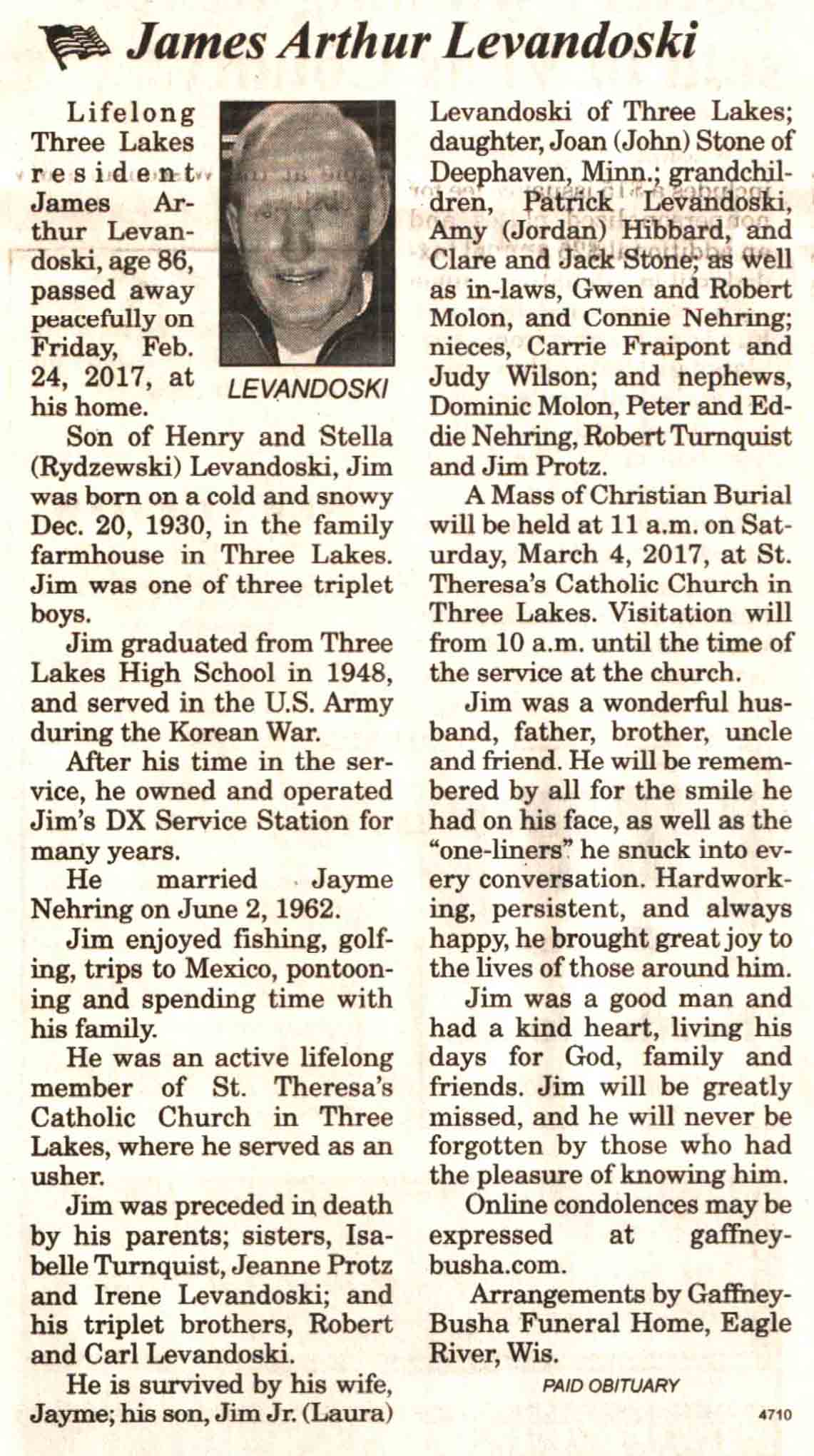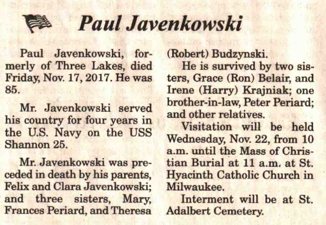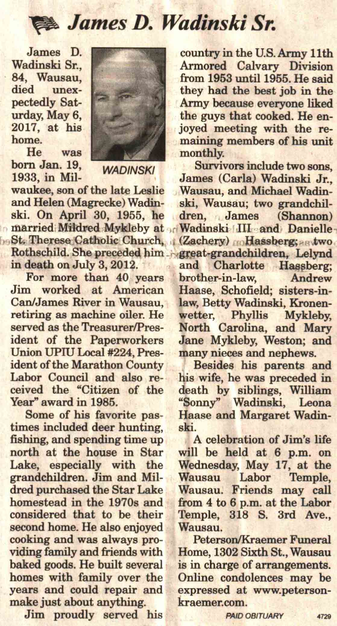 | Wadinski | James D, Sr | 19 Jan 1933 | 06 May 2017 | V N-R | 17 May 2017 | 4A |