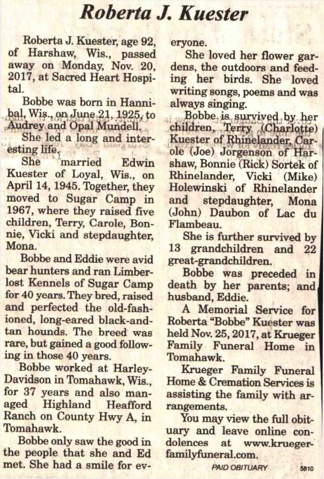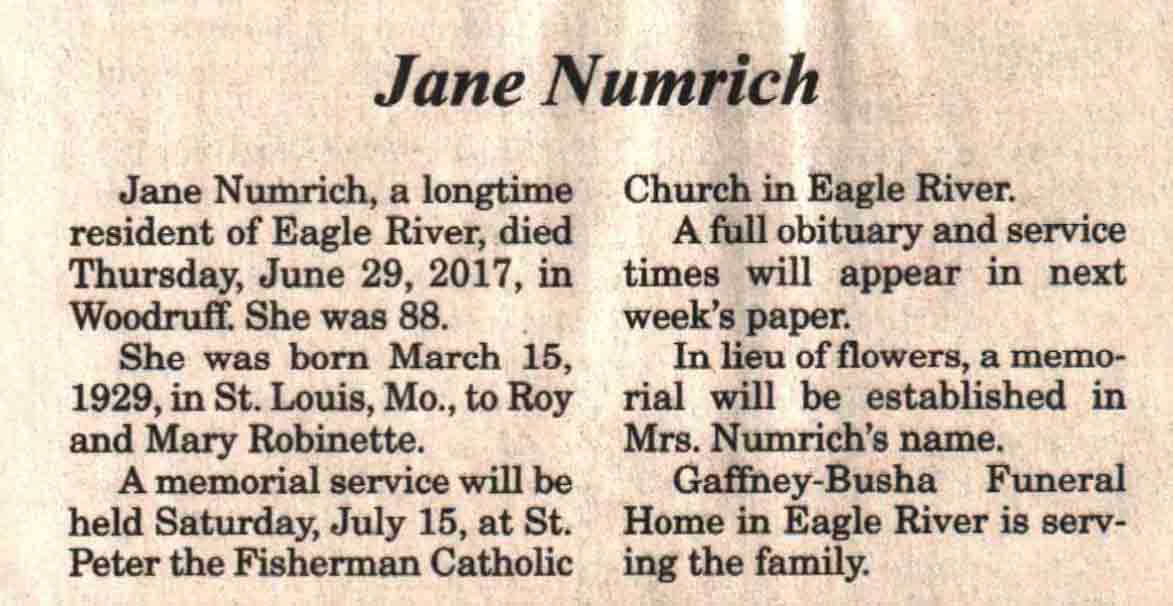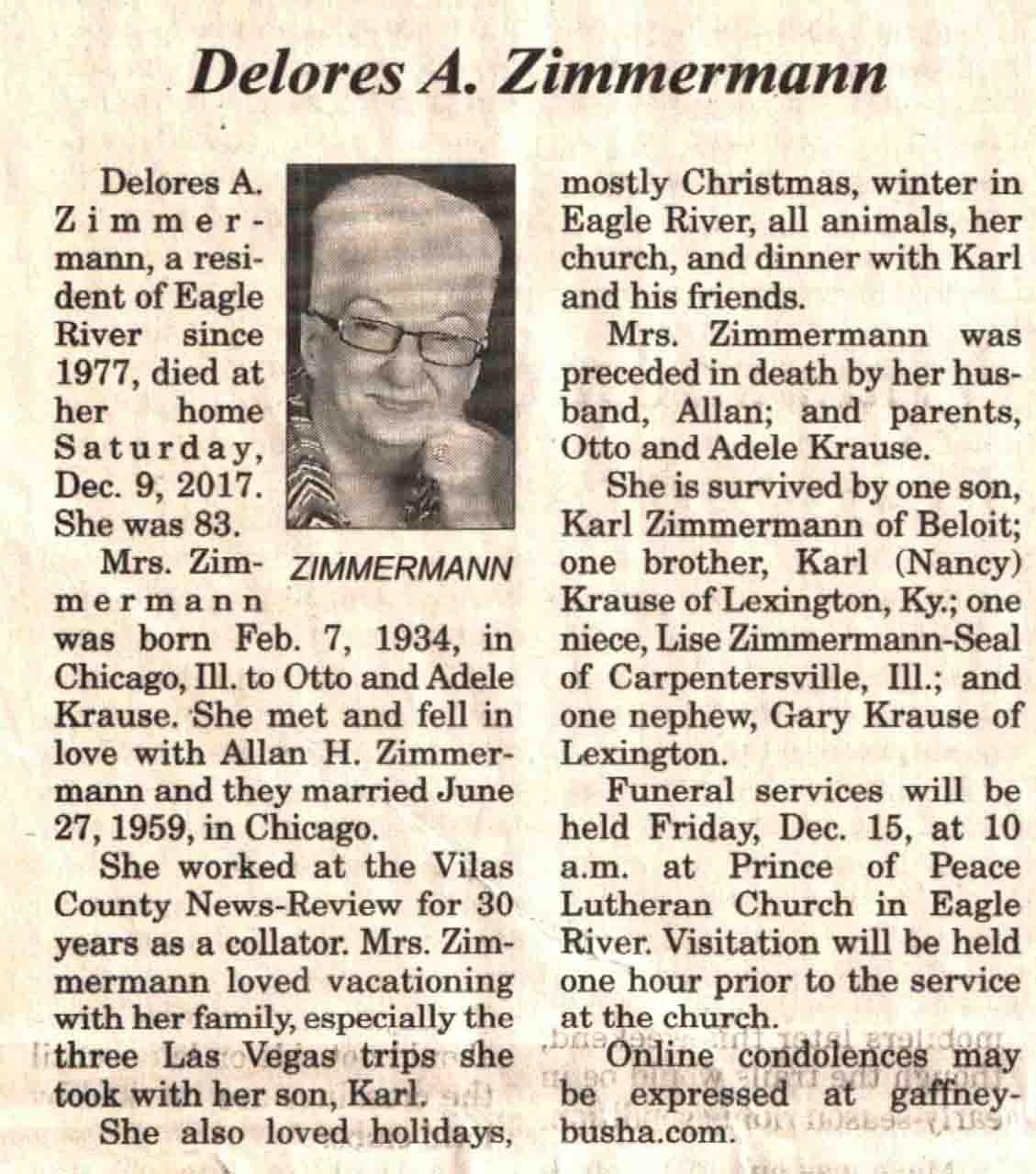 | Zimmerman | Delores A (Krause) | 07 Feb 1934 | 09 Dec 2017 | V N-R | 13 Dec 2017 | 4 |