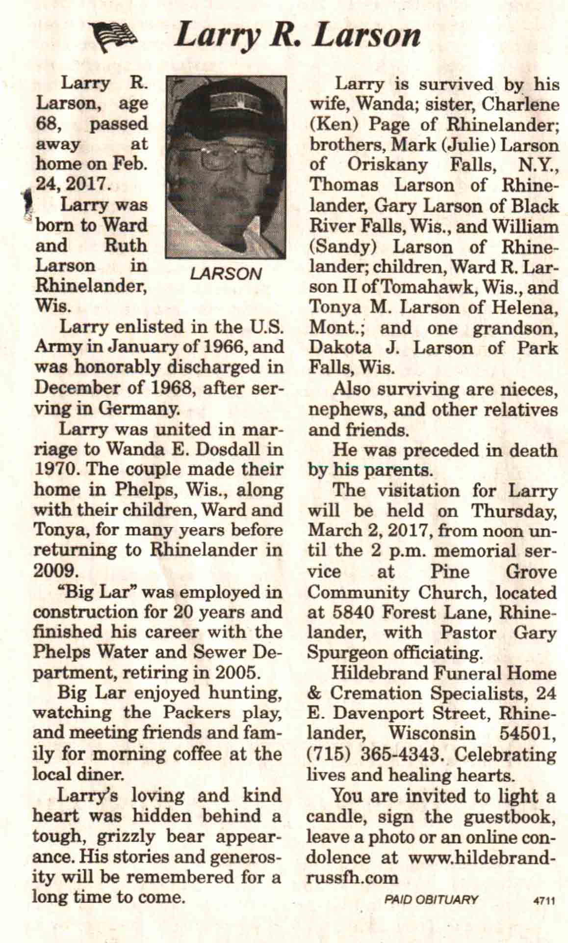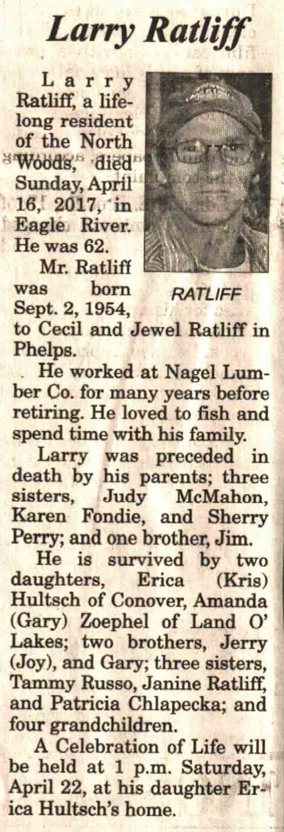 | Ratliff | Larry | 02 Sep 1954 | 16 Apr 2017 | V N-R | 19 Apr 2017 | 4 |