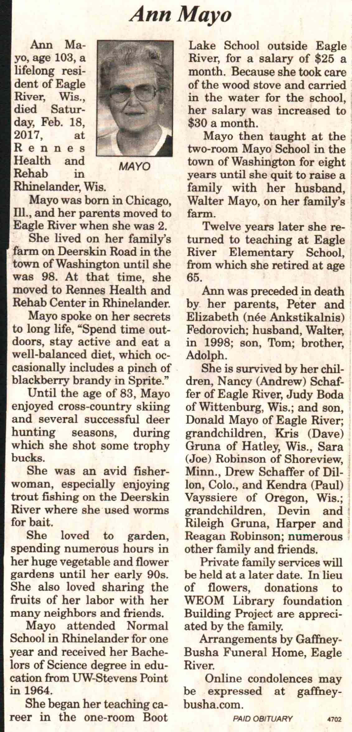 | Eckhardt | Ruth (Bold) | 10 Sep 1916 | 14 Apr 2017 | V N-R | 26 Apr 2017 | 4A |
