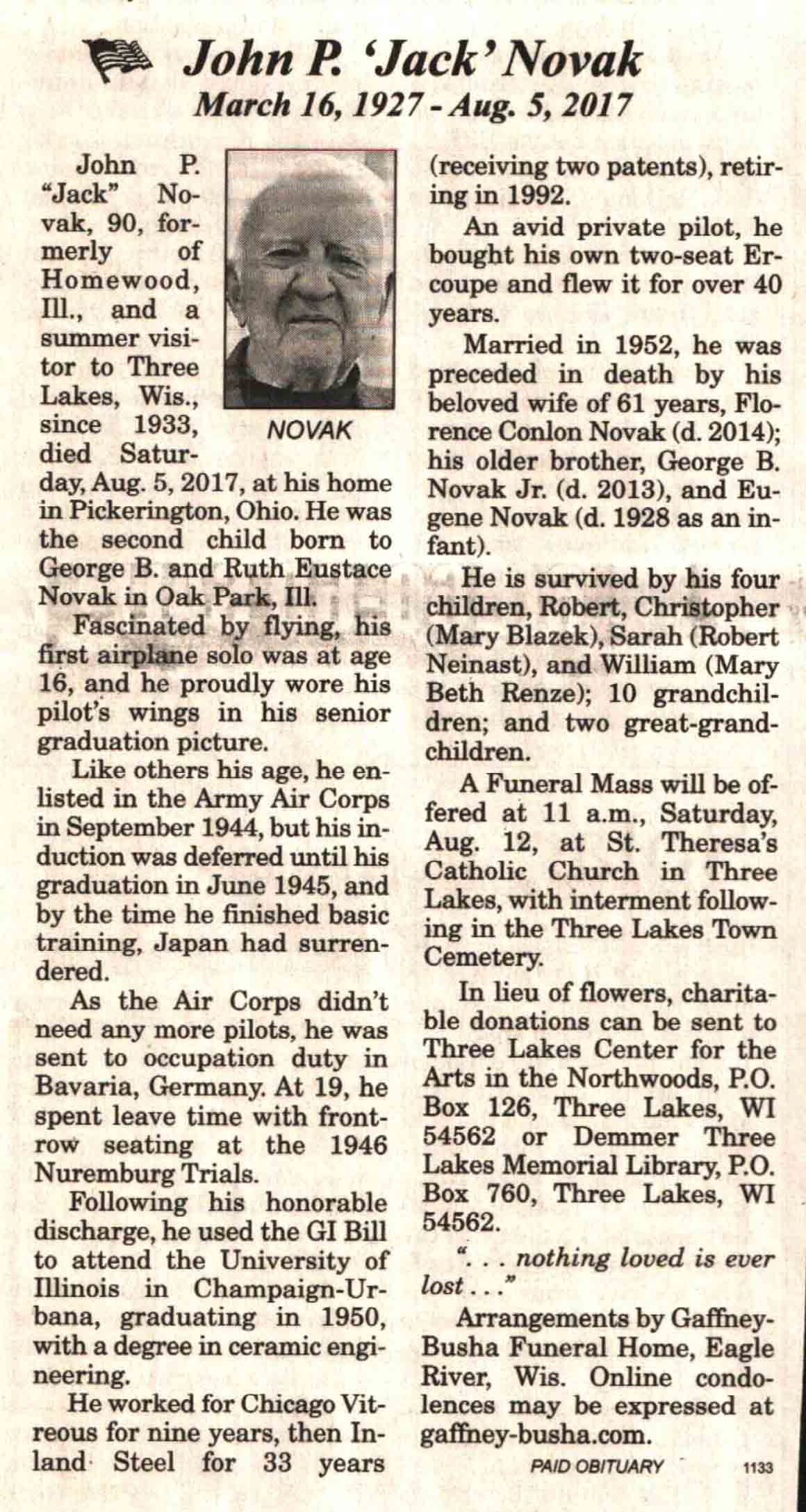 | Piszor | Louis 'Louie' | 17 Jan 1923 | 12 Mar 2017 | V N-R | 22 Mar 2017 | 4A |