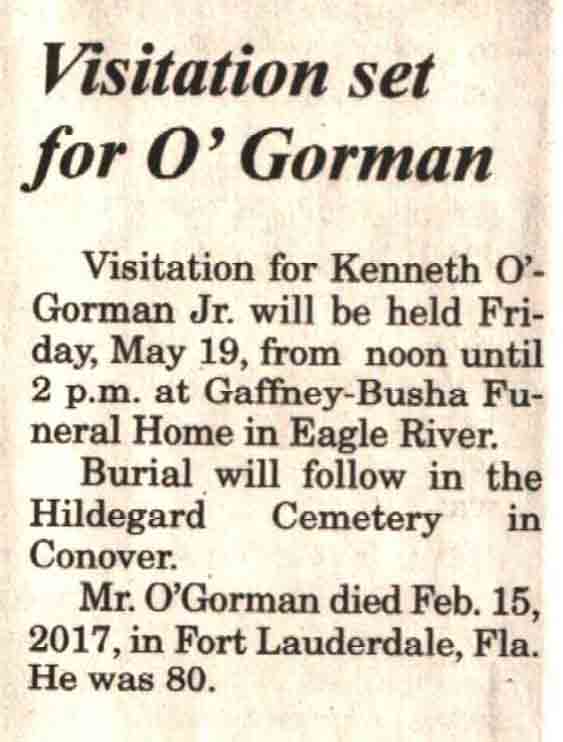 | O'Gorman | Kenneth, Jr | c 1937 | 15 Feb 2017 | V N-R | 17 May 2017 | 4A |