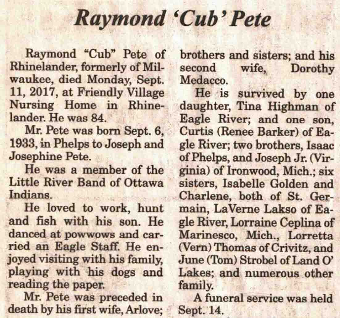 | Pete | Raymond 'Cub' | 06 Sep 1933 | 11 Sep 2017 | V N-R | 20 Sep 2017 | 4A |