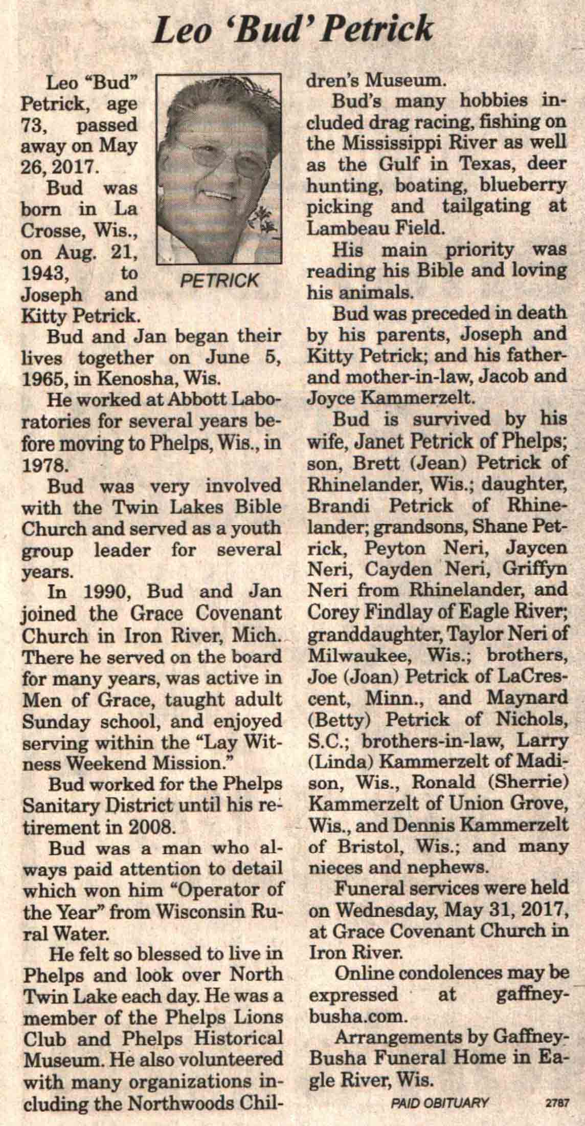 | Petrick | Leo 'Bud' | 21 Aug 1943 | 26 May 2017 | V N-R | 31 May 2017 | 4A |