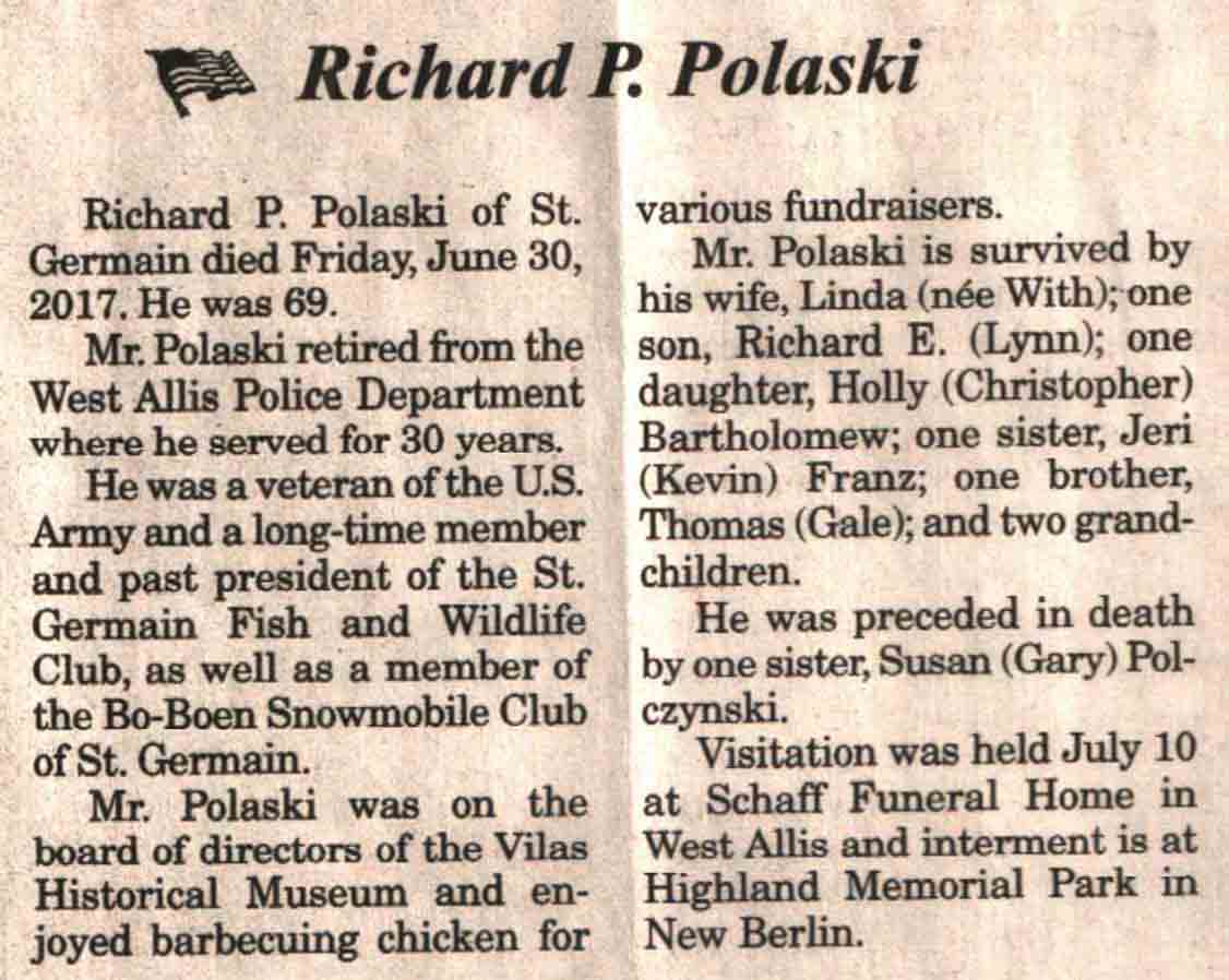 | Polaski | Richard P | c 1948 | 30 Jun 2017 | V N-R | 12 Jul 2017 | 4A |
