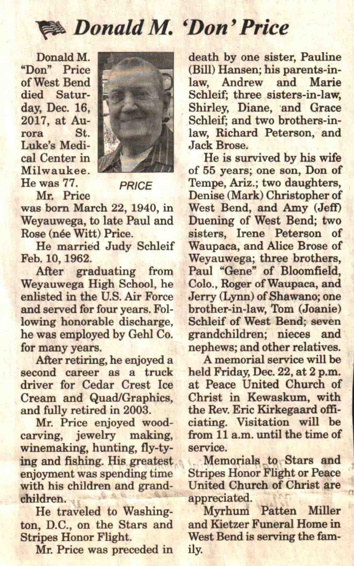 | Price | Donald M 'Don' | 22 Mar 1940 | 16 Dec 2017 | V N-R | 20 Dec 2017 | 4 |