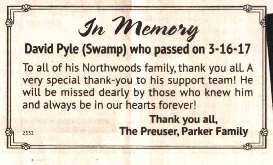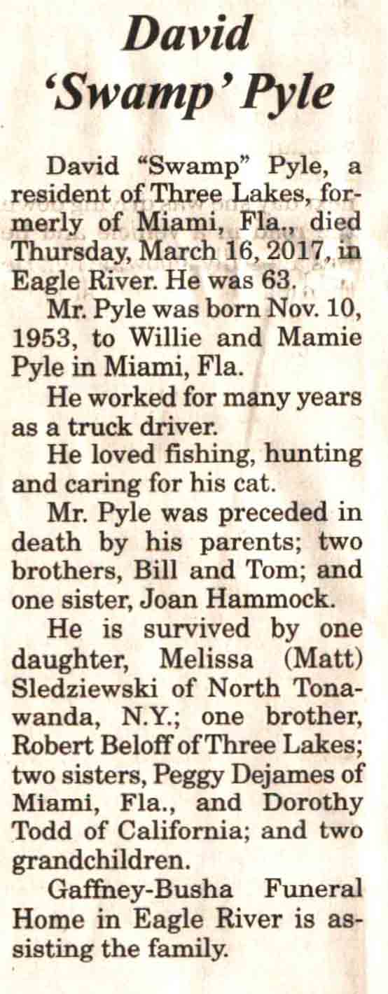| Pyle | David 'Swamp' #2 | 10 Nov 1953 | 16 Mar 2017 | V N-R | 29 Mar 2017 | 4A |